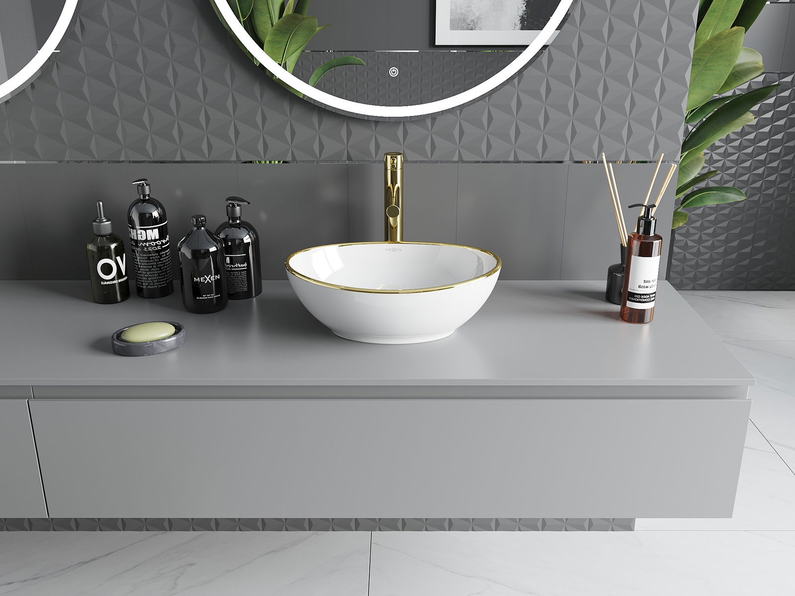 Mexen Elza lavabo à poser 40 x 33 cm, bord blanc/or - 21014005