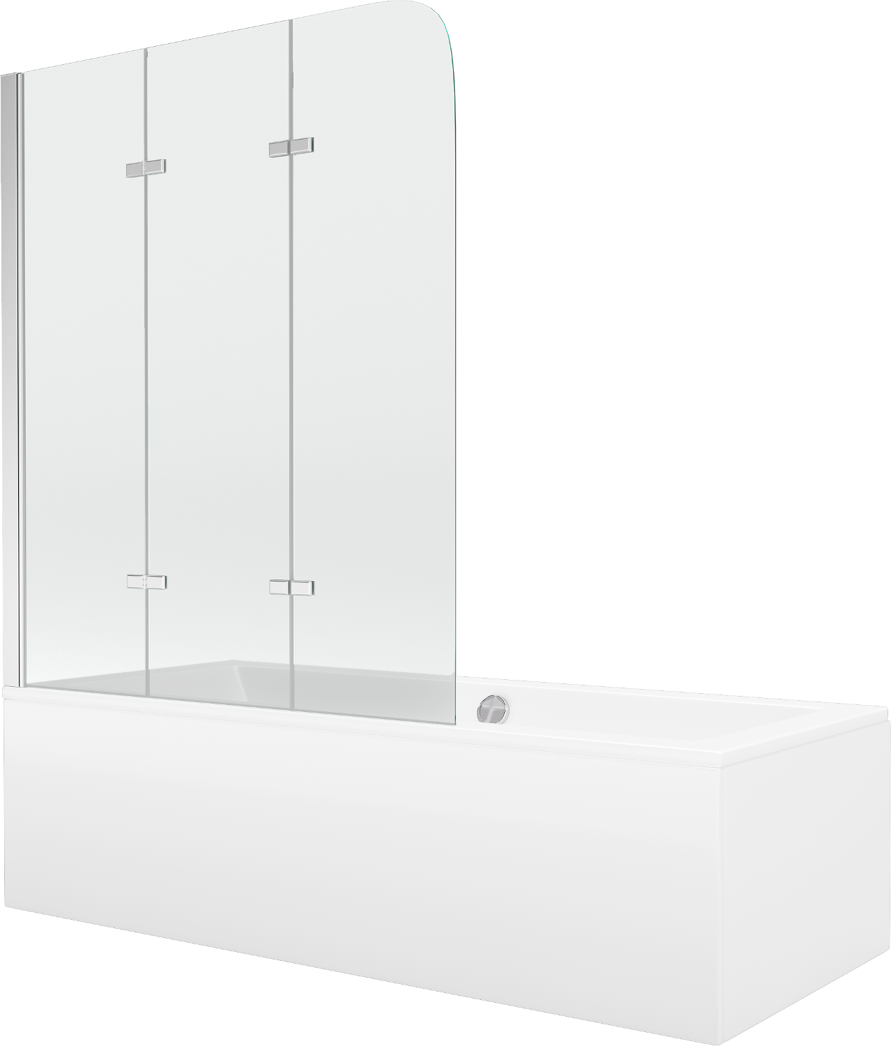 Mexen Cube baignoire rectangulaire 170 x 80 cm avec habillage et paroi de baignoire à 3 volets 120 cm, transparent, chrome