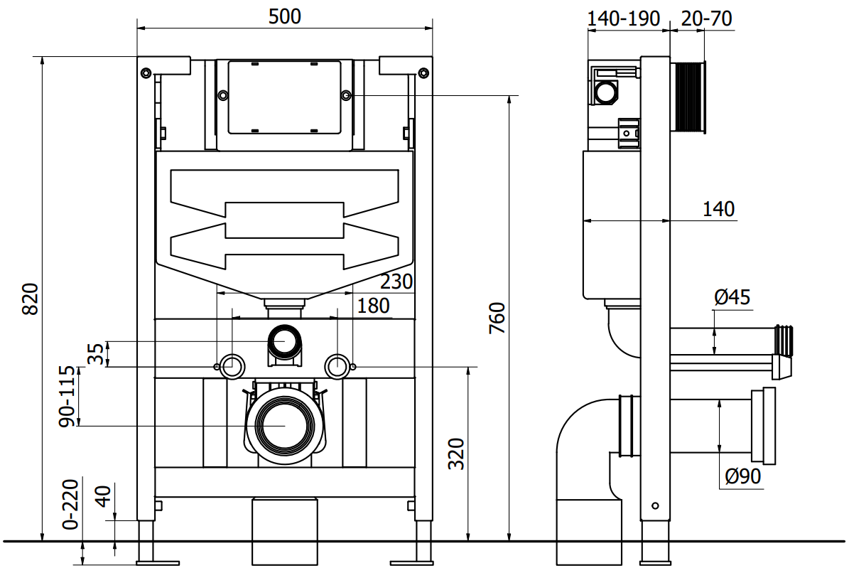 La possibilité de régler la hauteur du châssis permet un meilleur ajustement aux différentes conditions techniques dans la salle de bain. Une plage de réglage flexible assure le confort de l'installation et l'obtention de la hauteur optimale du châssis.
