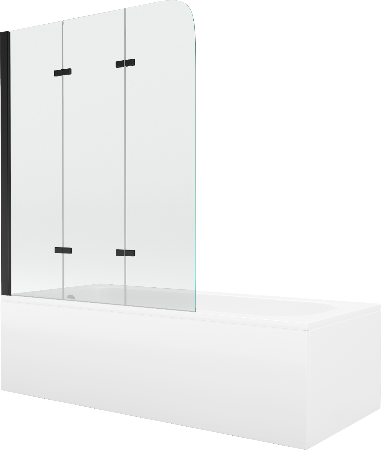 Mexen Vega baignoire rectangulaire 160 x 70 cm avec habillage et paroi de douche 3 volets 120 cm, transparent, noir
