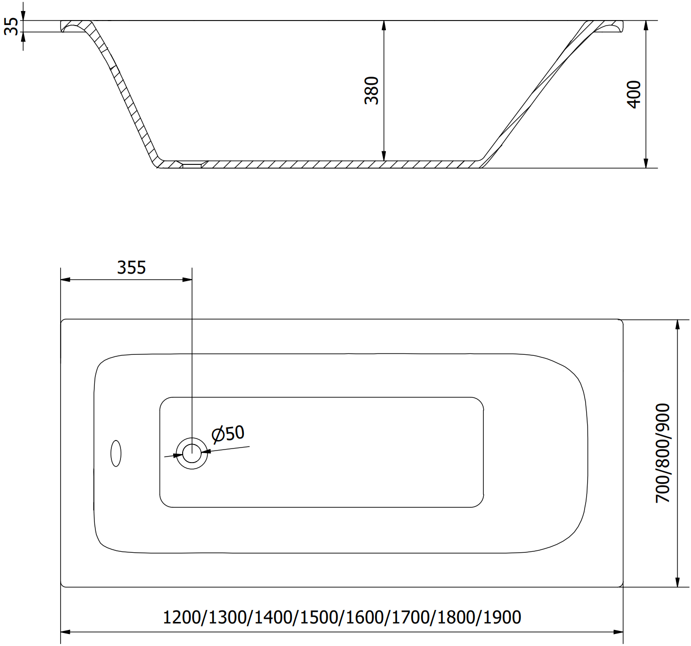 Habillage : 170 cm (panneau avant), 70 cm (panneau latéral)