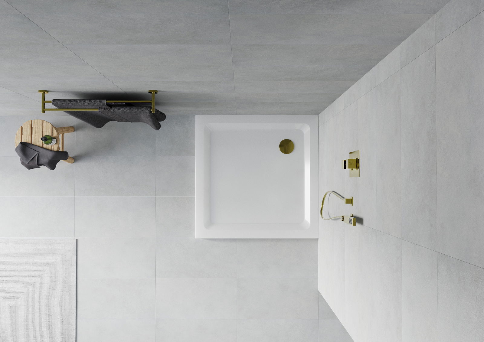 Mexen Flat receveur de douche carré slim 90 x 90 cm, blanc, siphon doré - 40109090G