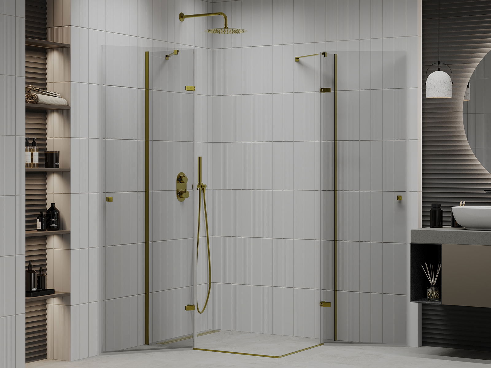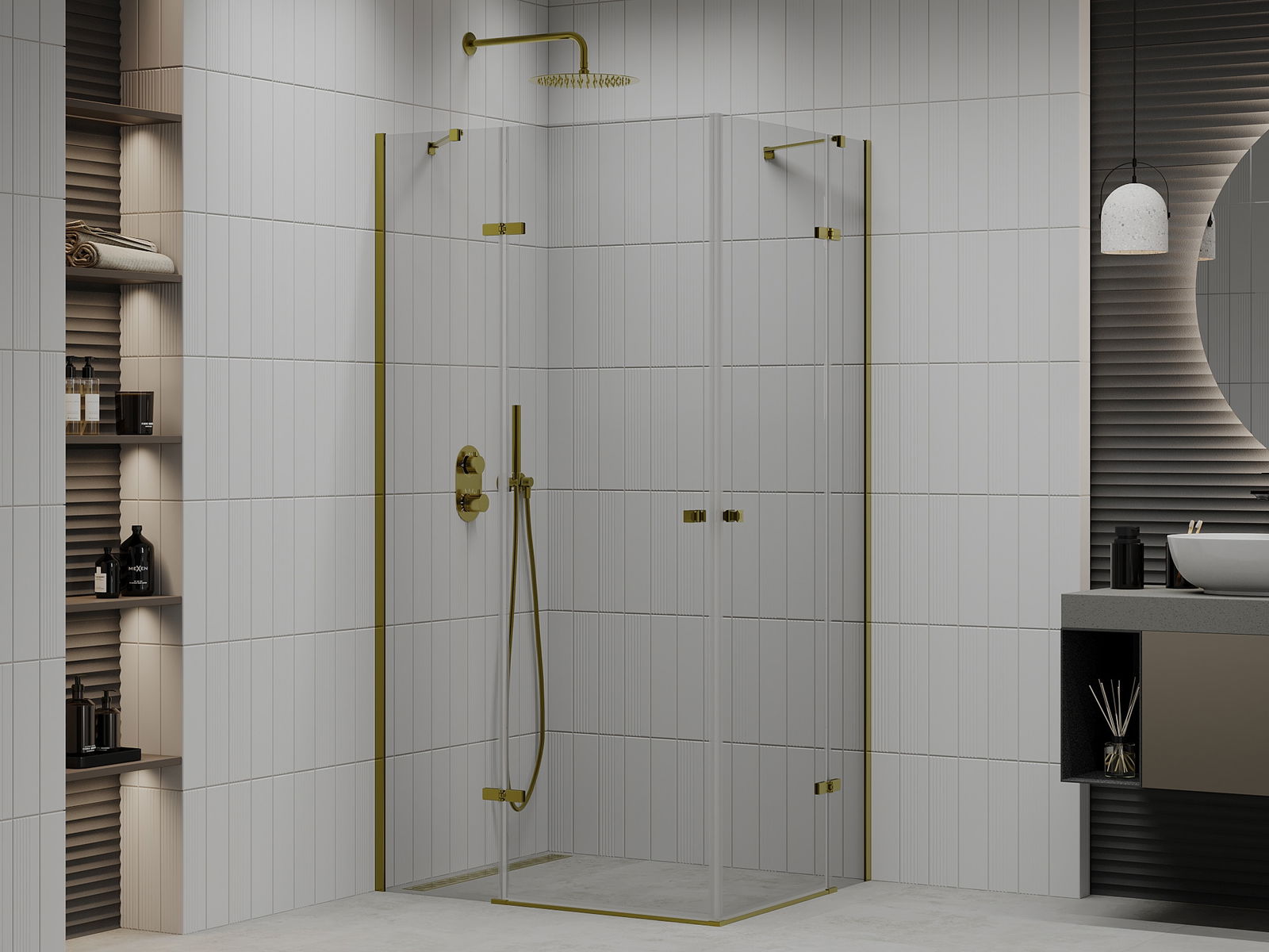 Mexen Roma Duo cabine de douche pivotante 80 x 70 cm, transparent, or - 854-080-070-50-00-02