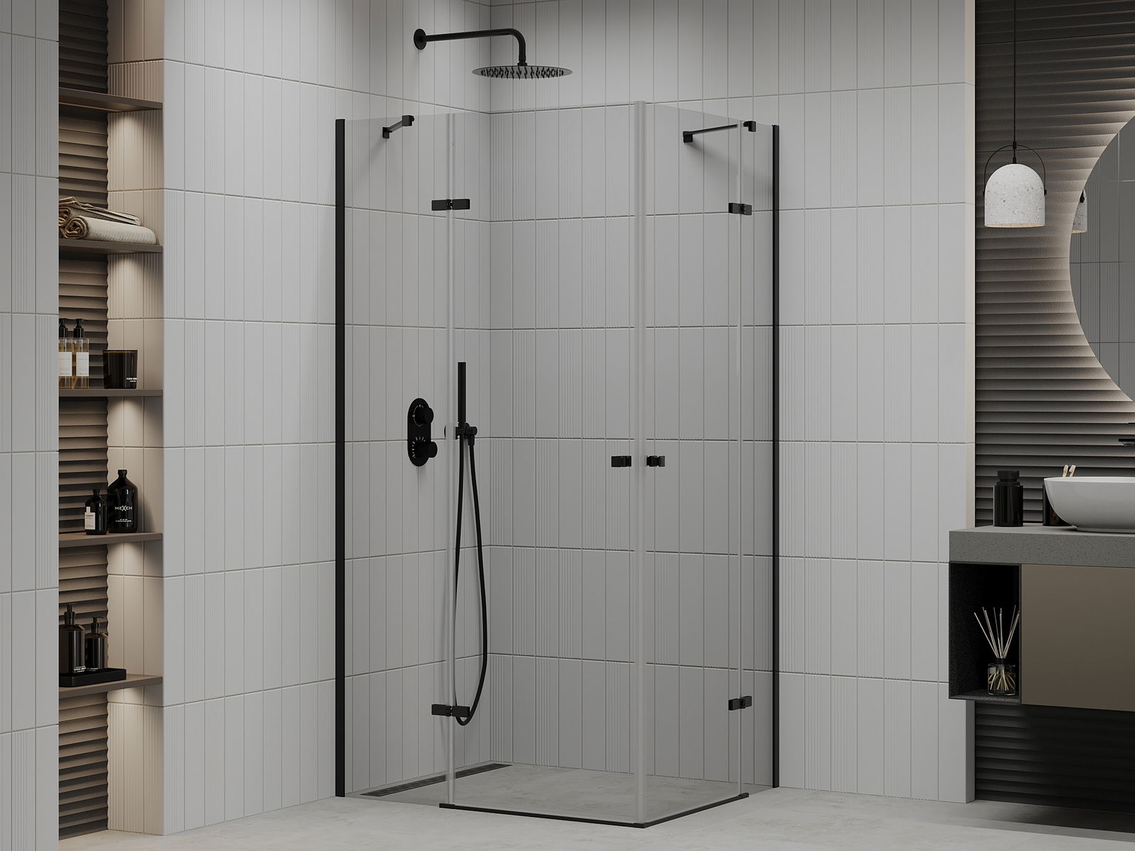 Mexen Roma Duo cabine de douche pivotante 100 x 90 cm, transparente, noire - 854-100-090-70-00-02