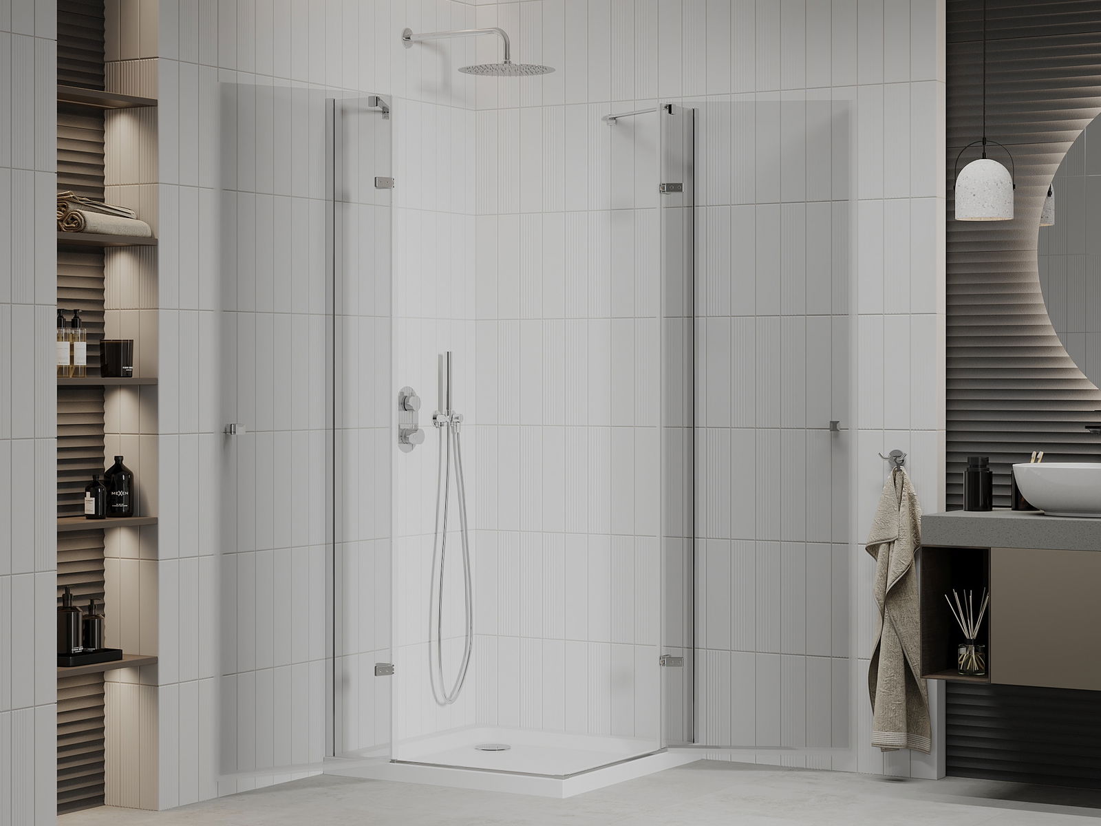 La poignée pratique et confortable est fabriquée en métal durable et résistant. Sa forme à la mode, combinée à une finition assortie à la couleur des profilés, donne à l'ensemble un aspect moderne et stylé, soulignant l'esthétique de chaque salle de bain.
