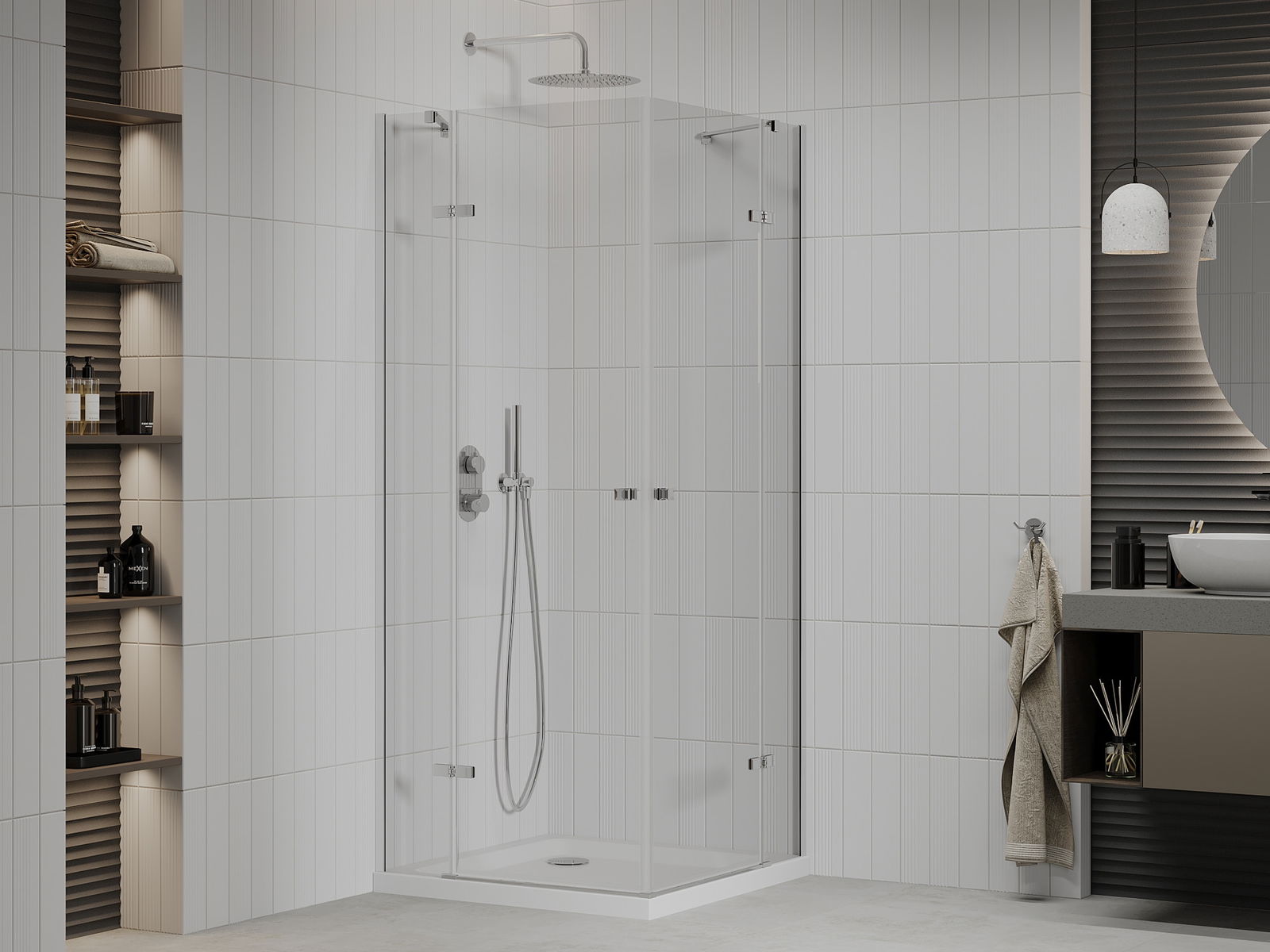 Mexen Roma Duo cabine de douche pivotante 90 x 90 cm, transparent, chrome + receveur Flat - 854-090-090-01-02-4010