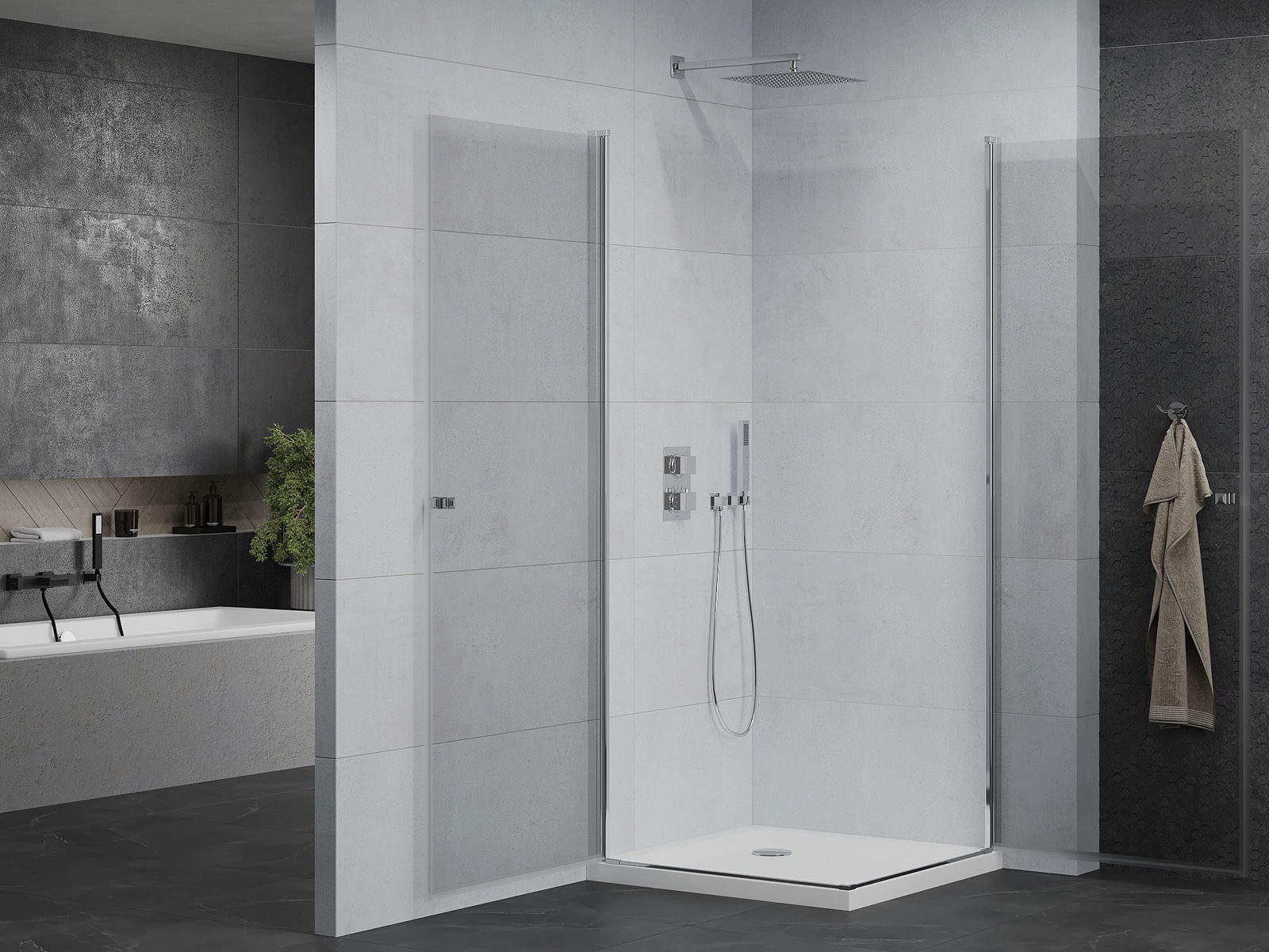 La poignée pratique et confortable est fabriquée en métal durable et résistant. Sa forme à la mode, combinée à une finition assortie à la couleur des profilés, donne à l'ensemble un aspect moderne et stylé, soulignant l'esthétique de chaque salle de bain.