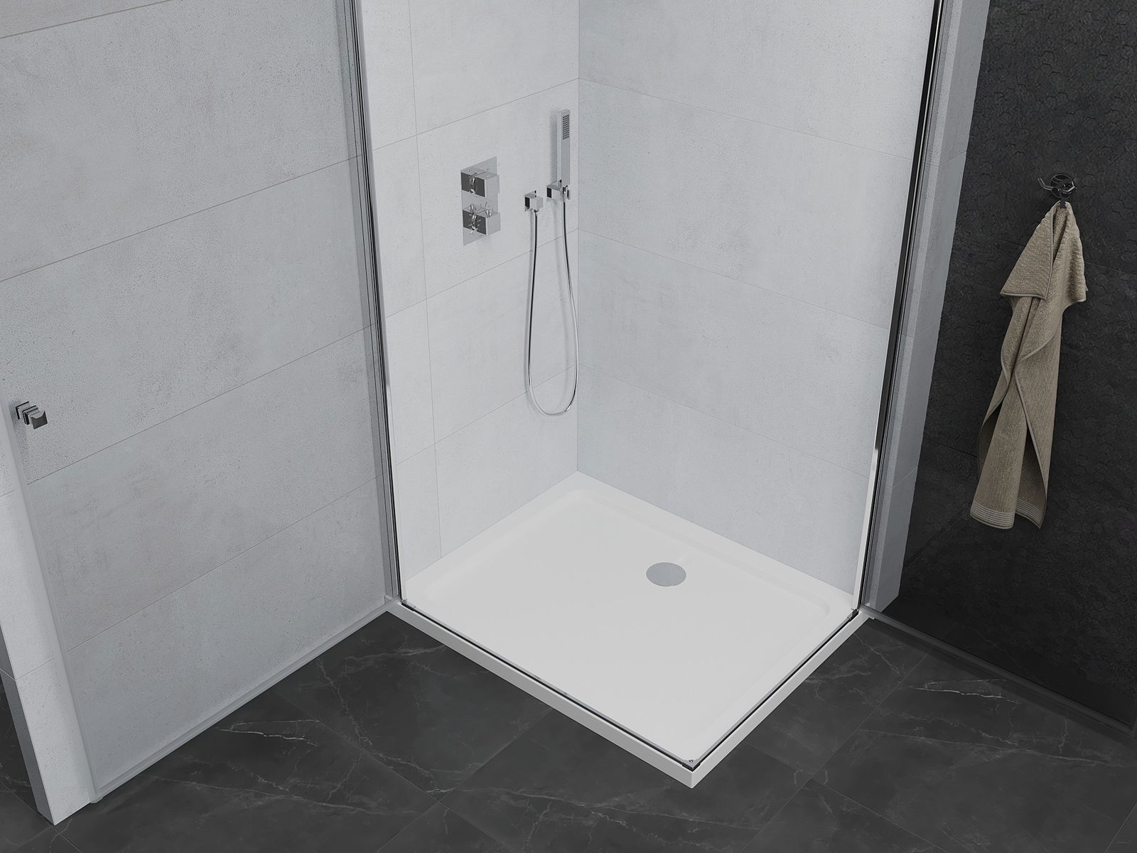 Mexen Pretoria Duo cabine de douche pivotante 90 x 80 cm, transparent, chrome + bac à douche Flat - 852-090-080-01-02-4010