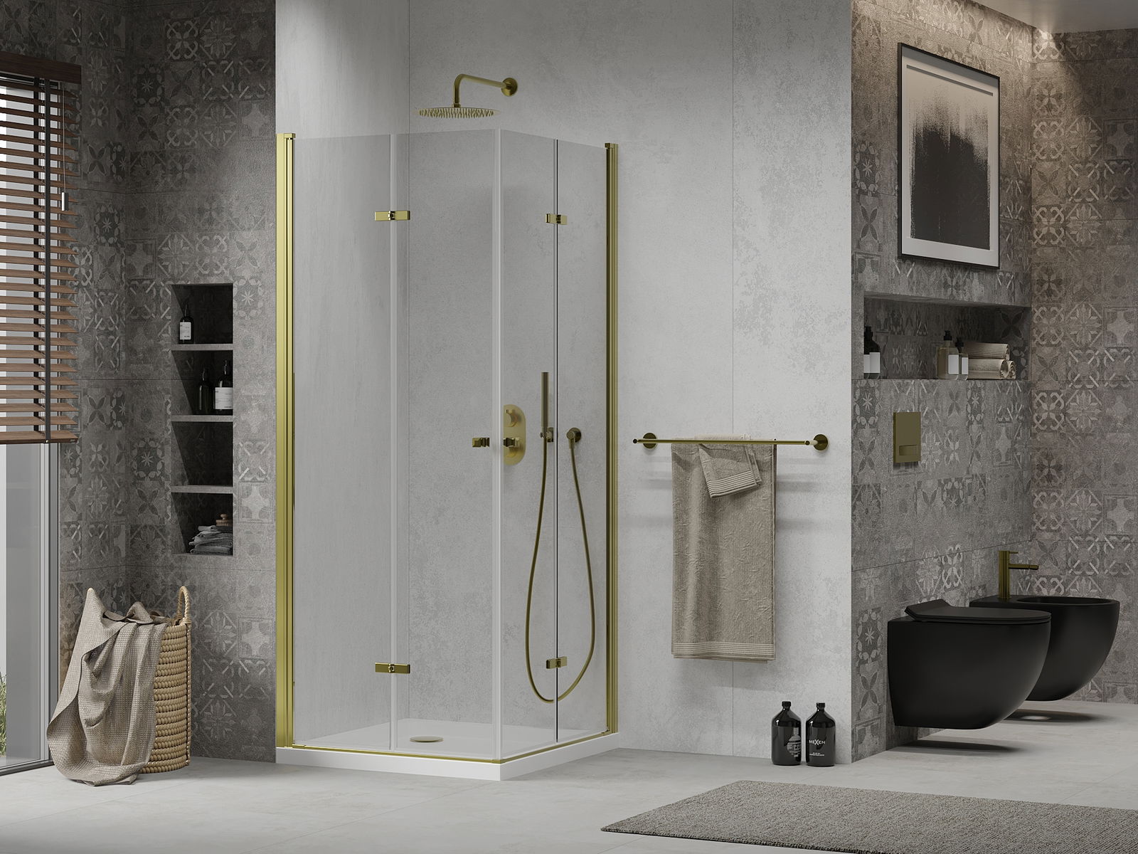 Mexen Lima Duo cabine de douche pliante 100 x 100 cm, transparent, doré + receveur Flat - 856-100-100-50-02-4010G