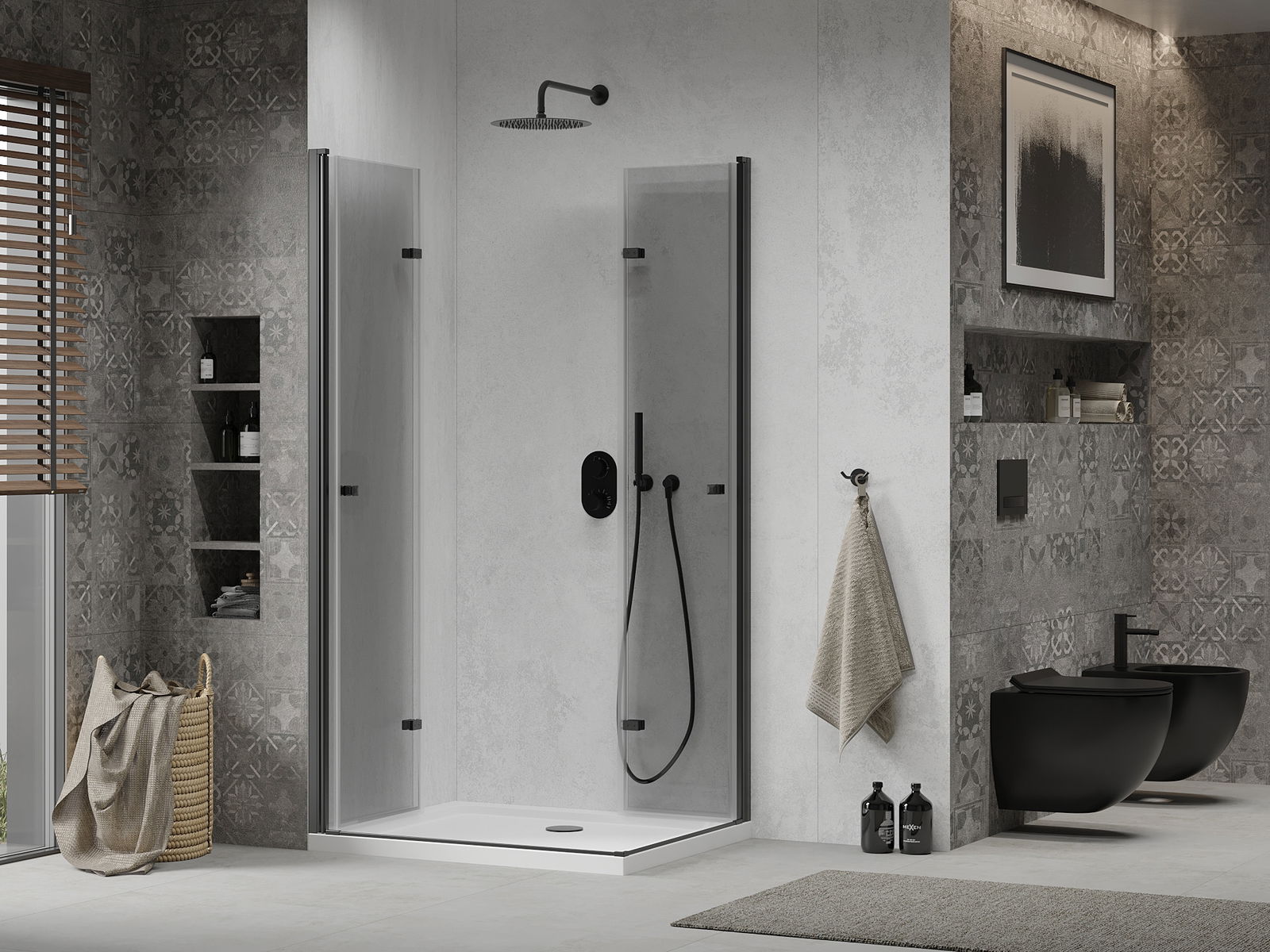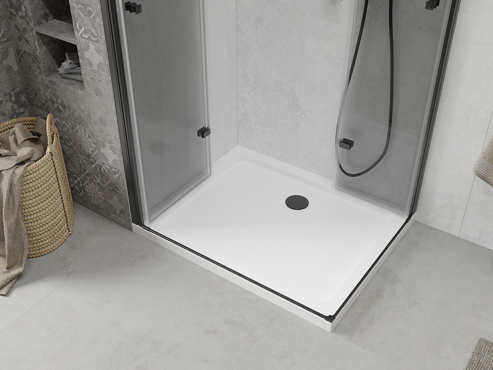 La poignée pratique et confortable est fabriquée en métal durable et résistant. Sa forme à la mode, combinée à une finition assortie à la couleur des profilés, donne à l'ensemble un aspect moderne et stylé, soulignant l'esthétique de chaque salle de bain.