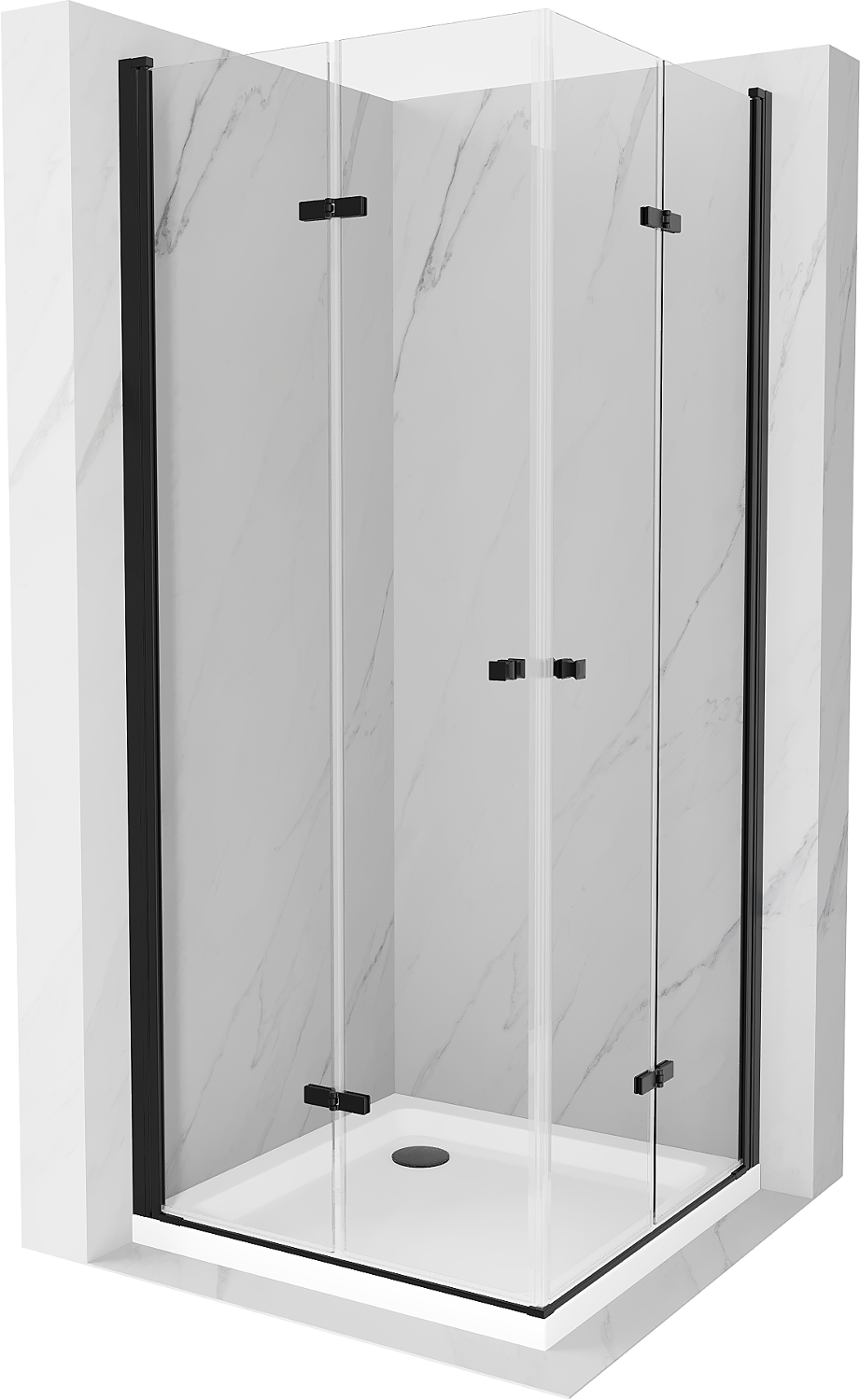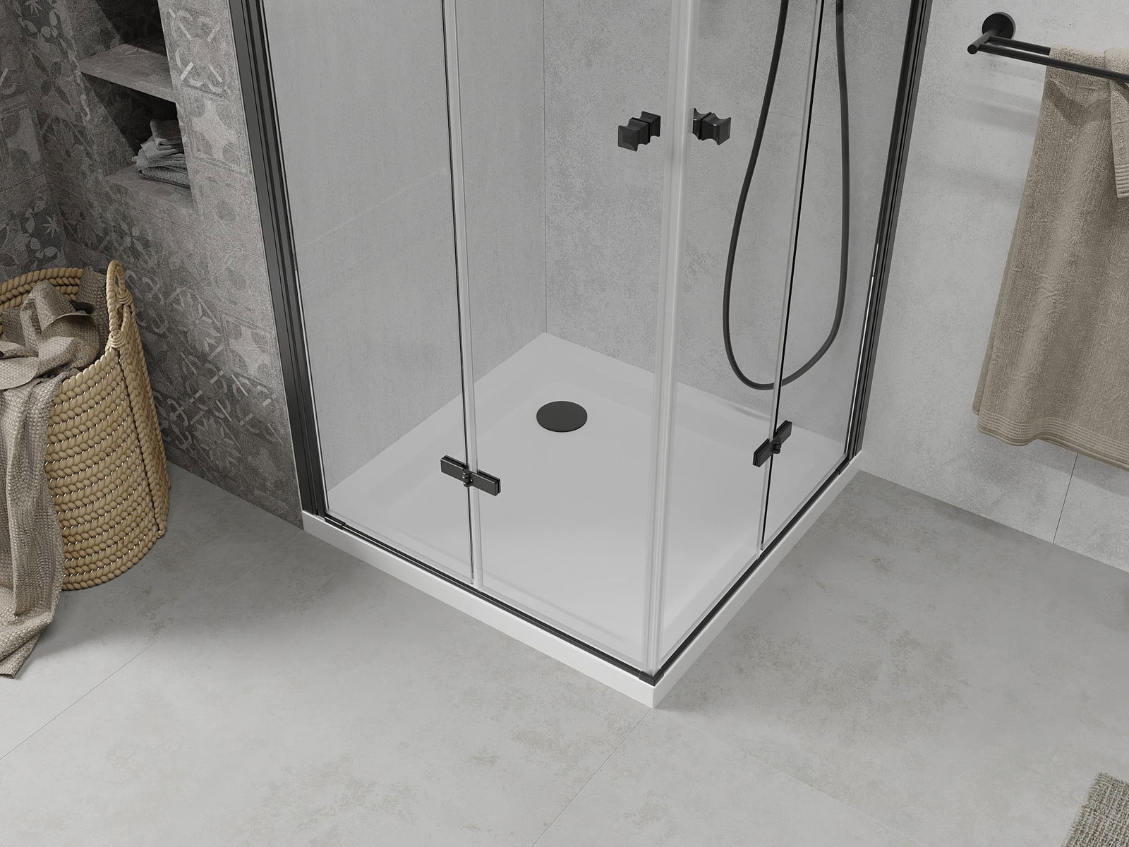 Mexen Lima Duo cabine de douche pliante 90 x 90 cm, transparente, noire + receveur Flat - 856-090-090-70-02-4010B