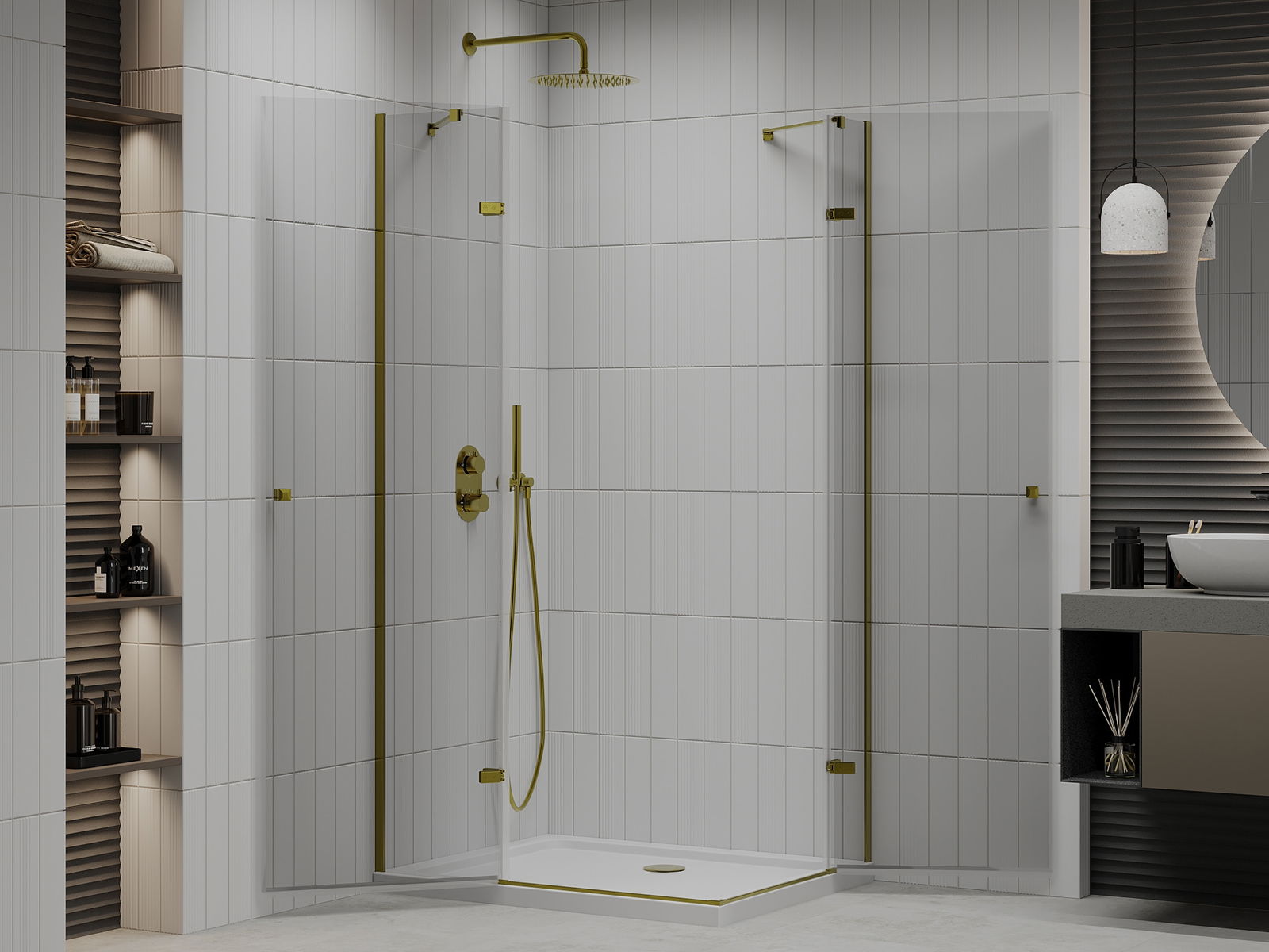 Mexen Roma Duo cabine de douche pivotante 100 x 90 cm, transparent, or + receveur plat - 854-100-090-50-02-4010G