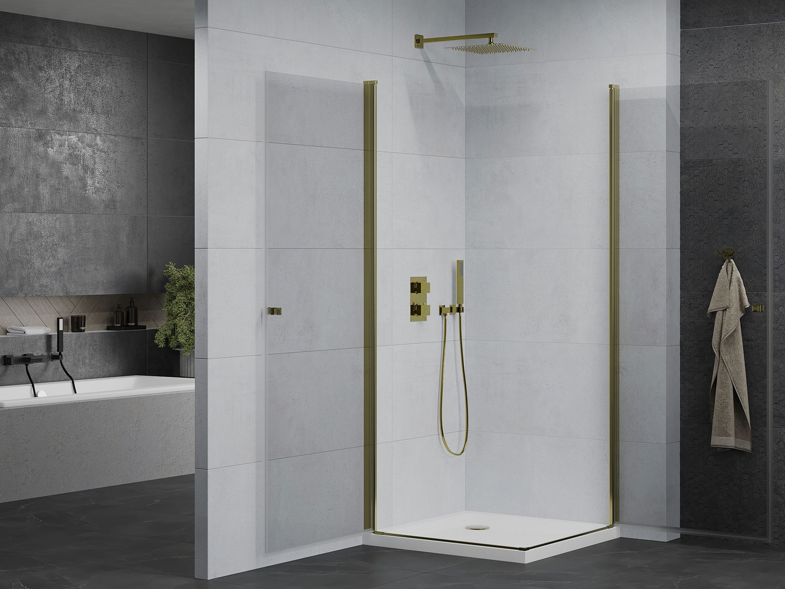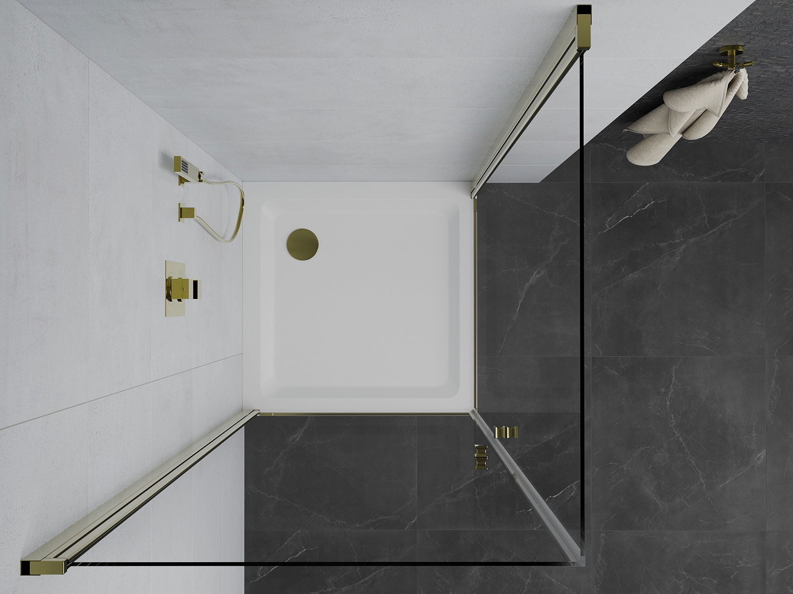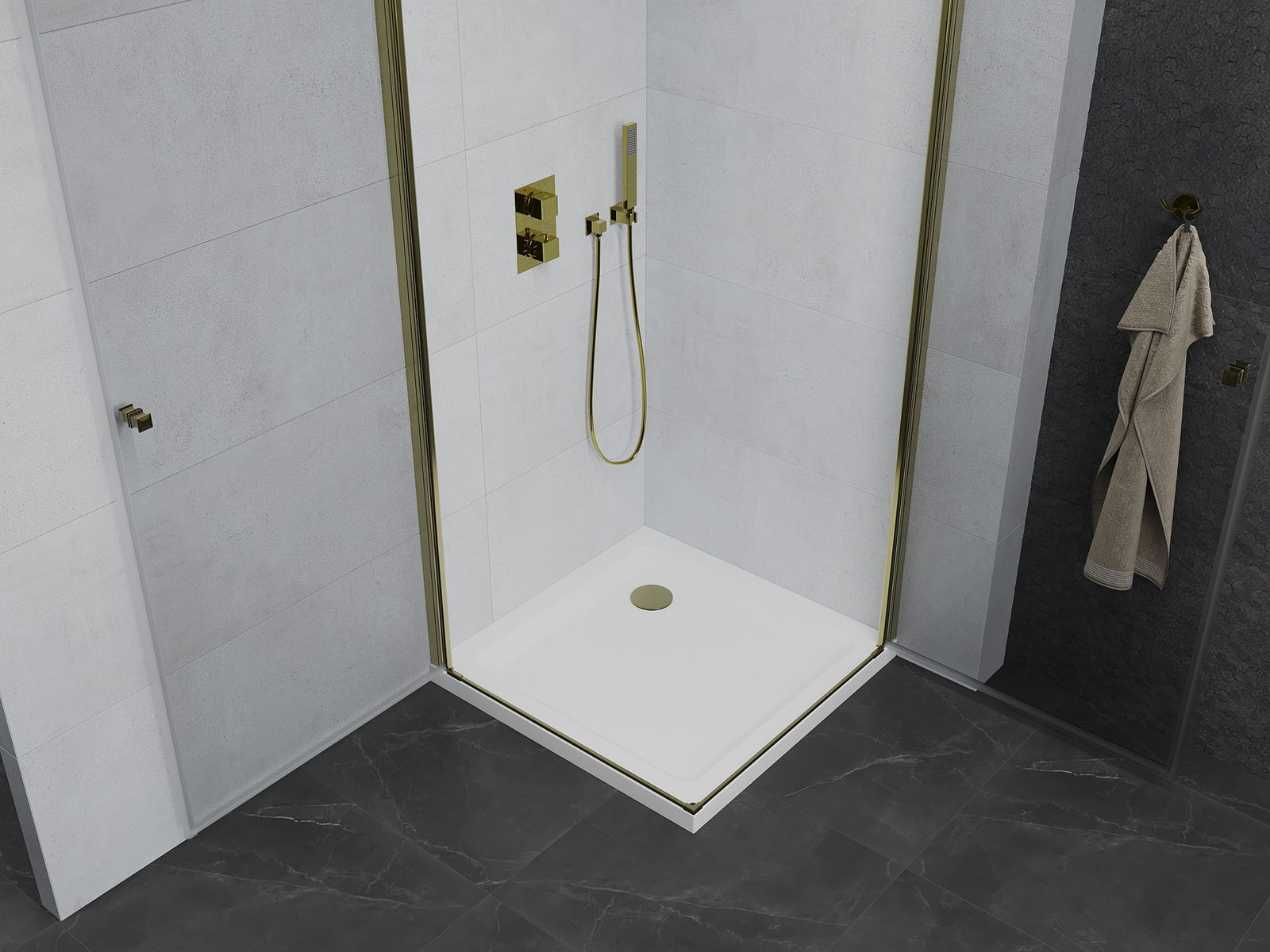 La poignée pratique et confortable est fabriquée en métal durable et résistant. Sa forme à la mode, combinée à une finition assortie à la couleur des profilés, donne à l'ensemble un aspect moderne et stylé, soulignant l'esthétique de chaque salle de bain.