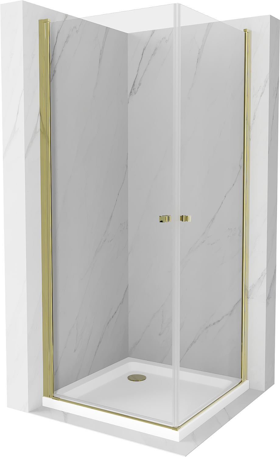 Mexen Pretoria Duo cabine de douche pivotante 80 x 80 cm, transparent, doré + receveur de douche Plat - 852-080-080-50-02-4010G
