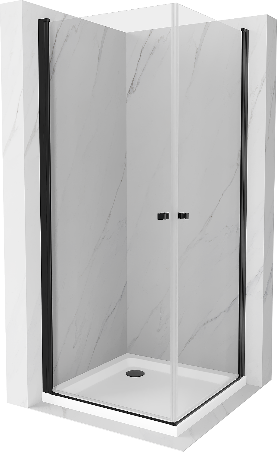 Mexen Pretoria Duo cabine de douche pivotante 70 x 70 cm, transparent, noir + receveur Flat - 852-070-070-70-02-4010B