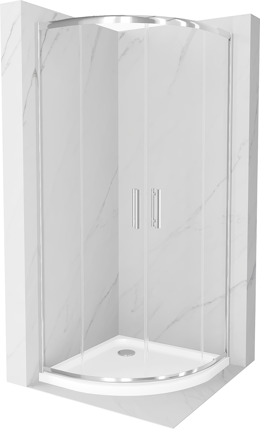 Mexen Rio cabine de douche demi-circulaire 80 x 80 cm, transparent, chrome + receveur Flat, blanc - 863-080-080-01-00-4110