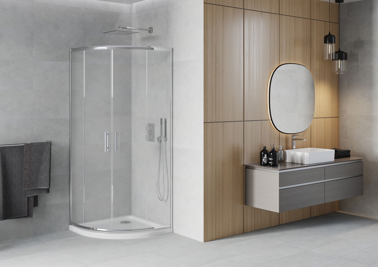Les portes coulissantes se déplacent sur des rails spéciaux et ne nécessitent pas d'espace supplémentaire pour être ouvertes, ce qui les rend idéales pour les petites salles de bains. Grâce à des roulettes doubles en plastique durable, leur mouvement est fluide.