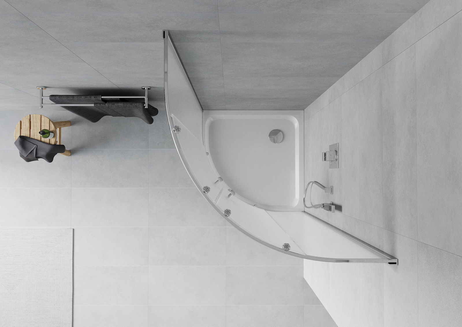 La poignée pratique et confortable est fabriquée en métal durable et résistant. Sa forme à la mode, combinée à une finition assortie à la couleur des profilés, donne à l'ensemble un aspect moderne et stylé, soulignant l'esthétique de chaque salle de bain.
