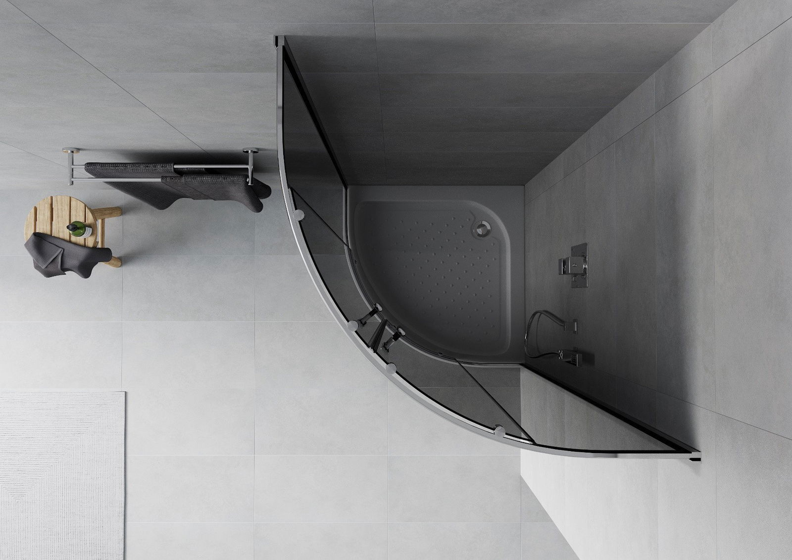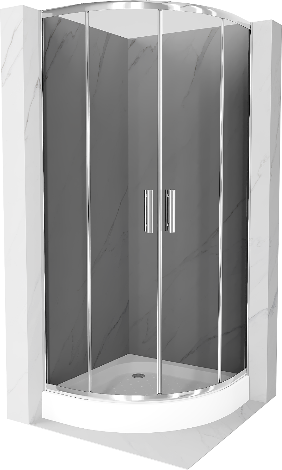 Mexen Rio cabine de douche semi-circulaire 70 x 70 cm, graphite, chrome + receveur Rio, blanc - 863-070-070-01-40-4710