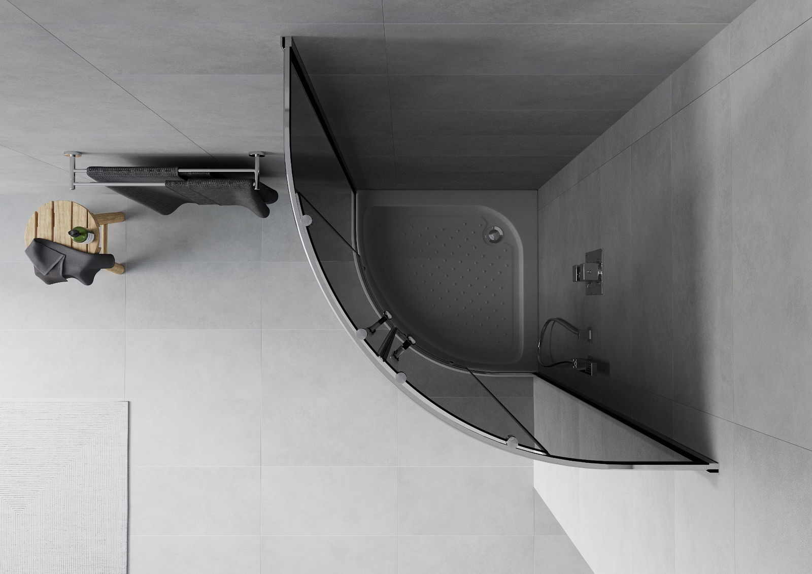 Mexen Rio cabine de douche semi-circulaire 90 x 90 cm, graphite, chromé + receveur Rio, blanc - 863-090-090-01-40-4710