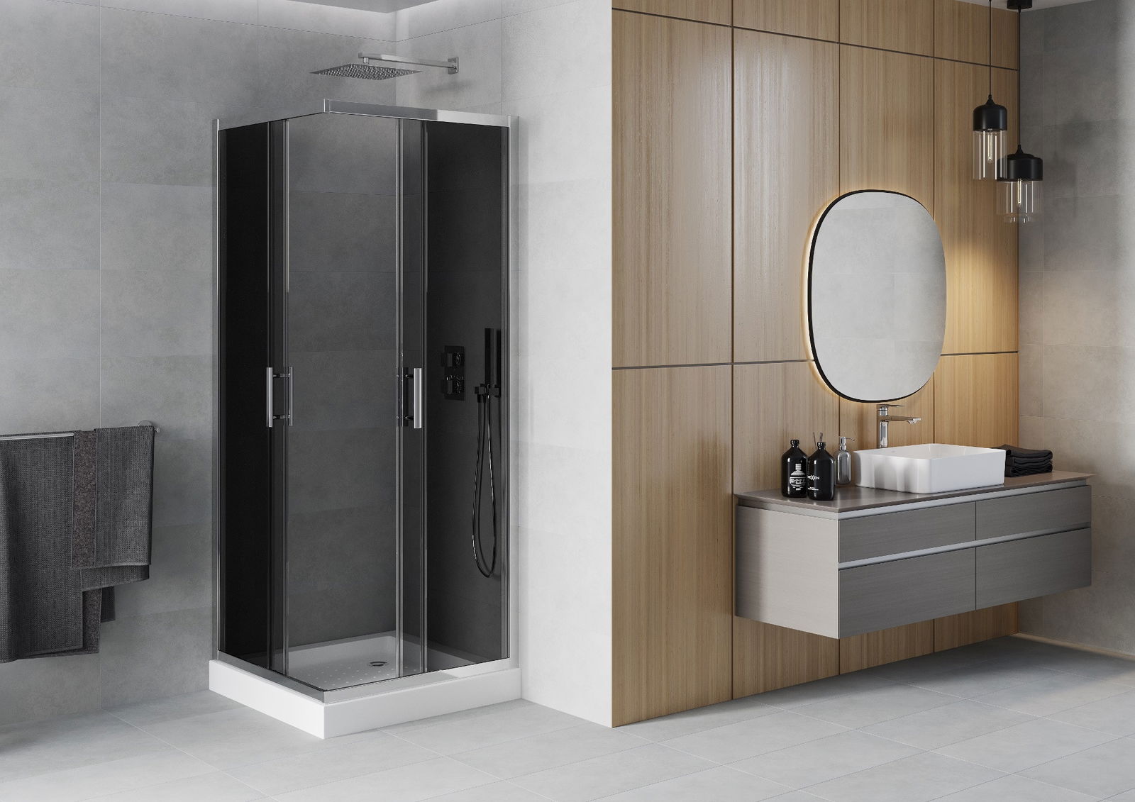 Les portes coulissantes se déplacent sur des rails spéciaux et ne nécessitent pas d'espace supplémentaire pour être ouvertes, ce qui les rend idéales pour les petites salles de bains. Grâce à des roulettes doubles en plastique durable, leur mouvement est fluide.