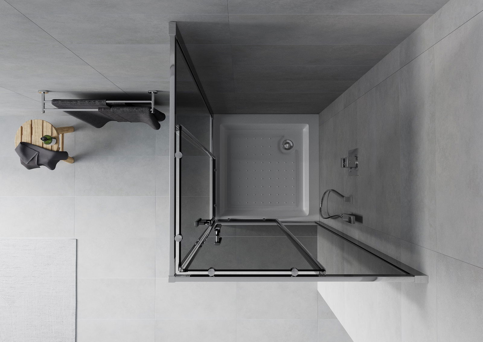 Mexen Rio cabine de douche carrée 70 x 70 cm, graphite, chrome + receveur Rio, blanc - 860-070-070-01-40-4510