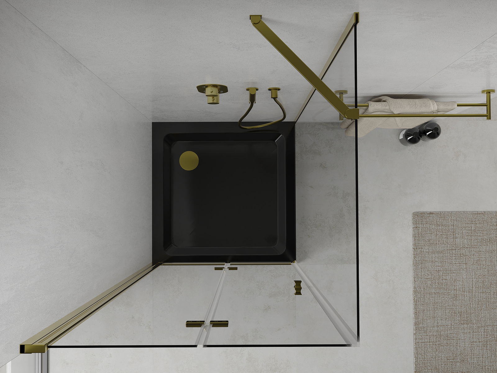 Mexen Lima cabine de douche pliante 80 x 80 cm, transparent, dorée + receveur Flat, noir - 856-080-080-50-00-4070G