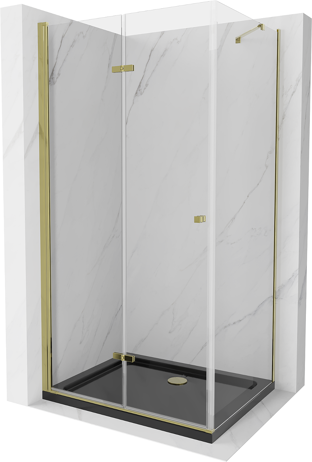 Mexen Lima cabine de douche pliante 80 x 100 cm, transparent, or + receveur Flat, noir - 856-080-100-50-00-4070G