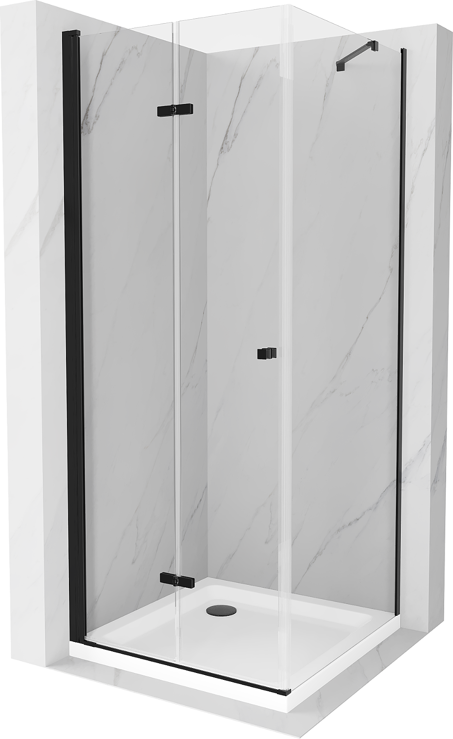 Mexen Lima cabine de douche pliante 90 x 90 cm, transparent, noir + receveur Flat, blanc - 856-090-090-70-00-4010B