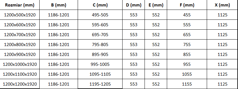 Taille : 120x80 cm (porte 120 cm, paroi 80 cm)