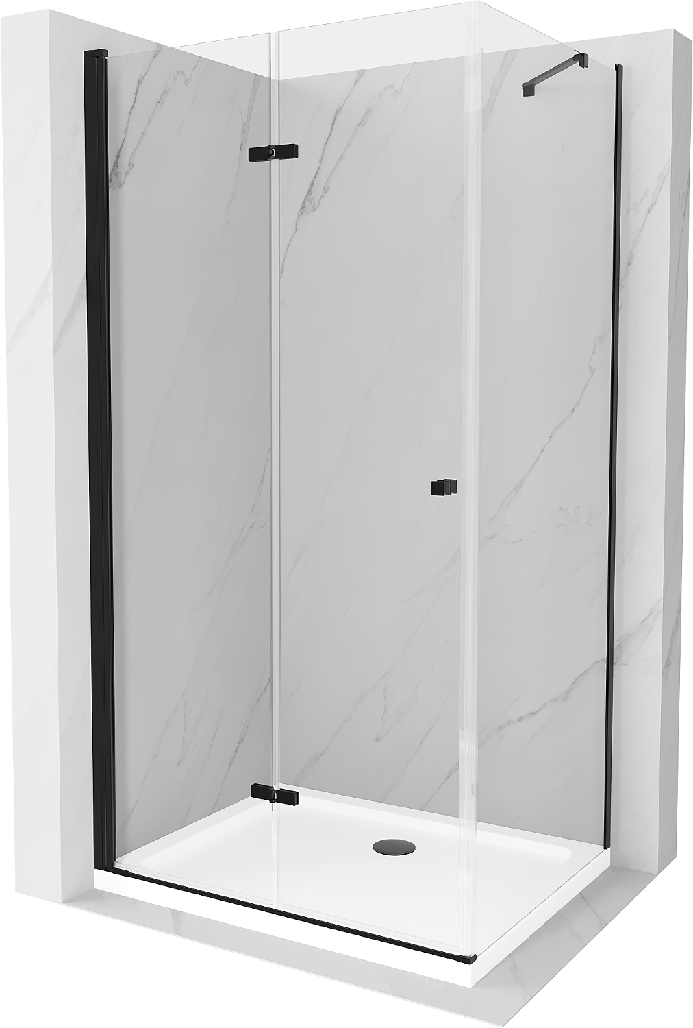Mexen Lima cabine de douche pliante 120 x 80 cm, transparent, noir + receveur Flat, blanc - 856-120-080-70-00-4010B