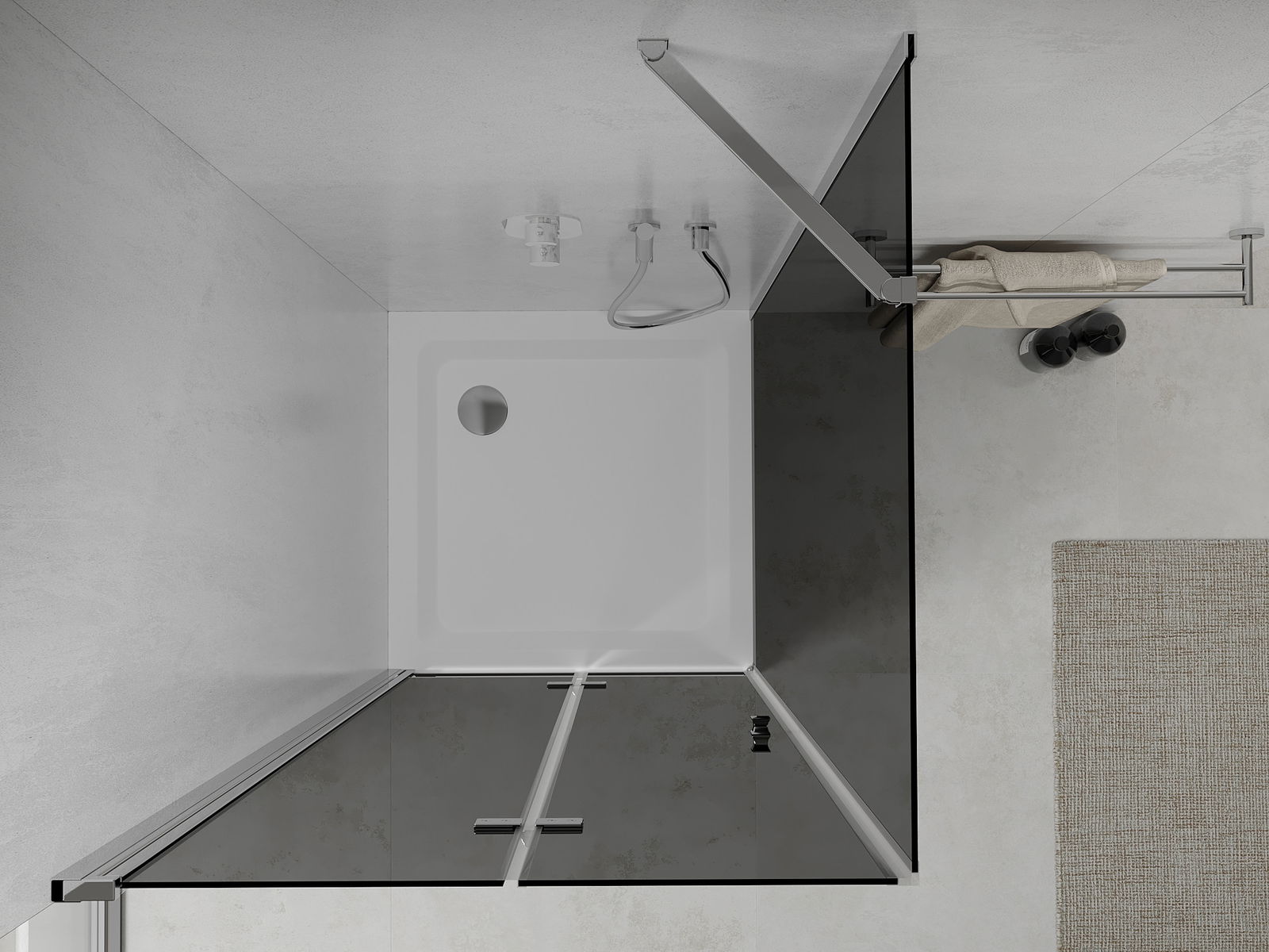 La poignée pratique et confortable est fabriquée en métal durable et résistant. Sa forme à la mode, combinée à une finition assortie à la couleur des profilés, donne à l'ensemble un aspect moderne et stylé, soulignant l'esthétique de chaque salle de bain.