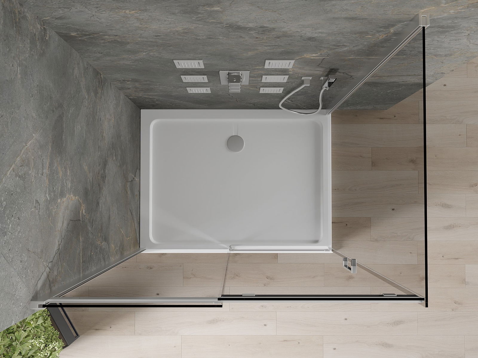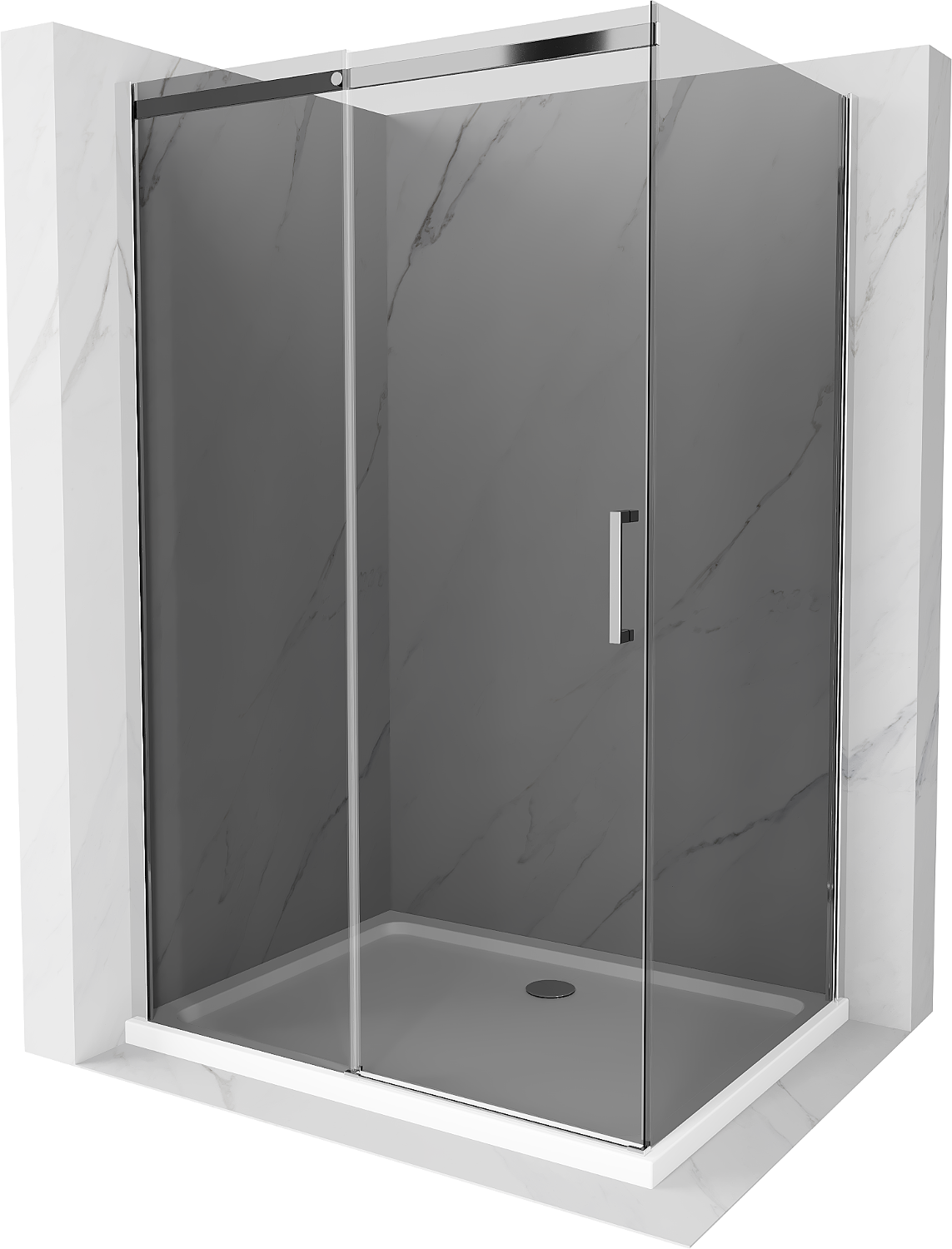 Mexen Omega cabine de douche coulissante 130 x 90 cm, graphite, chrome + receveur Flat, blanc - 825-130-090-01-40-4010