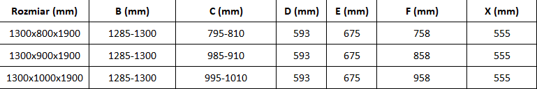 Taille : 130x80 cm (portes 130 cm, paroi 80 cm)