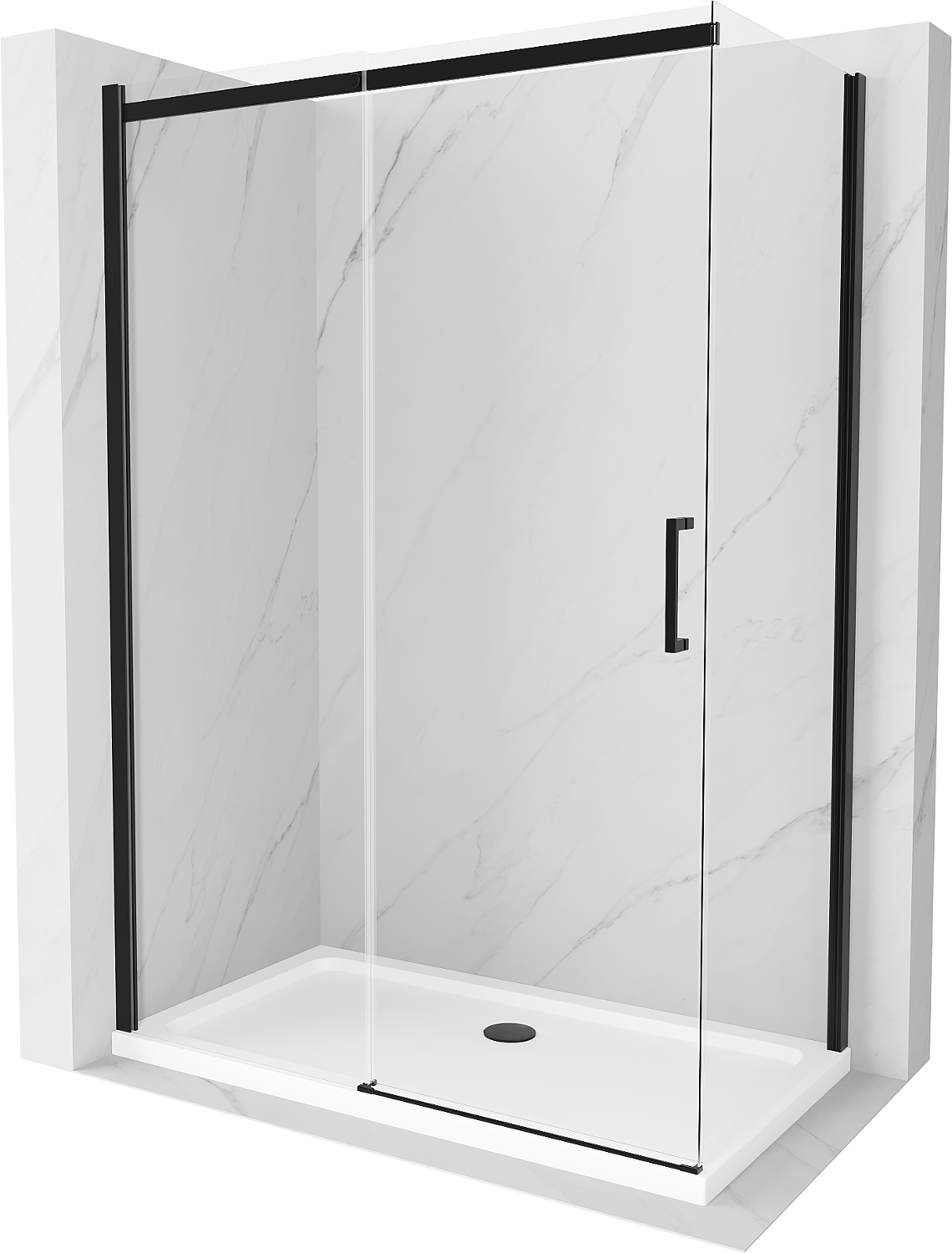 Mexen Omega cabine de douche coulissante 140 x 80 cm, transparent, noire + receveur Flat, blanc - 825-140-080-70-00-4010B