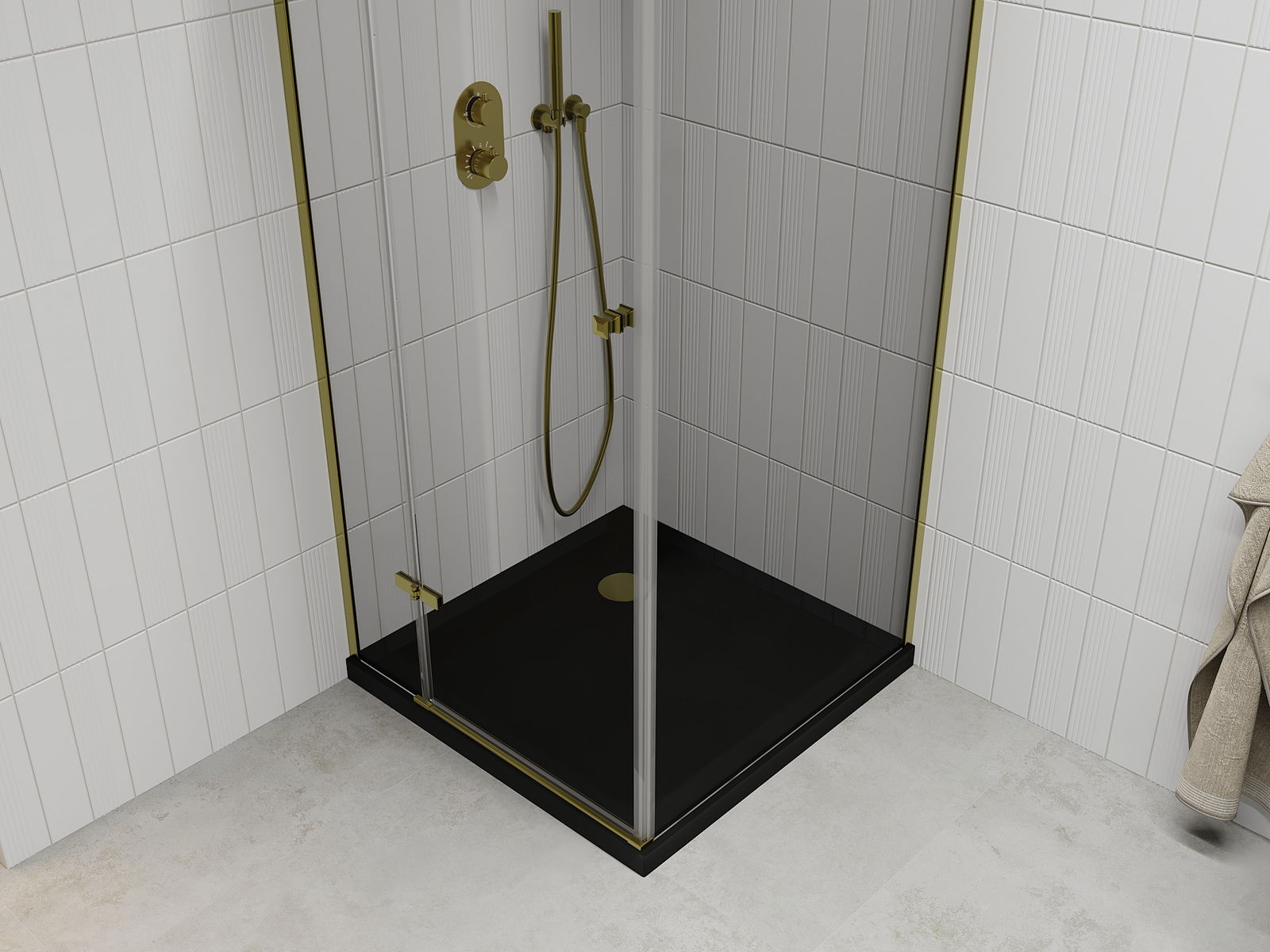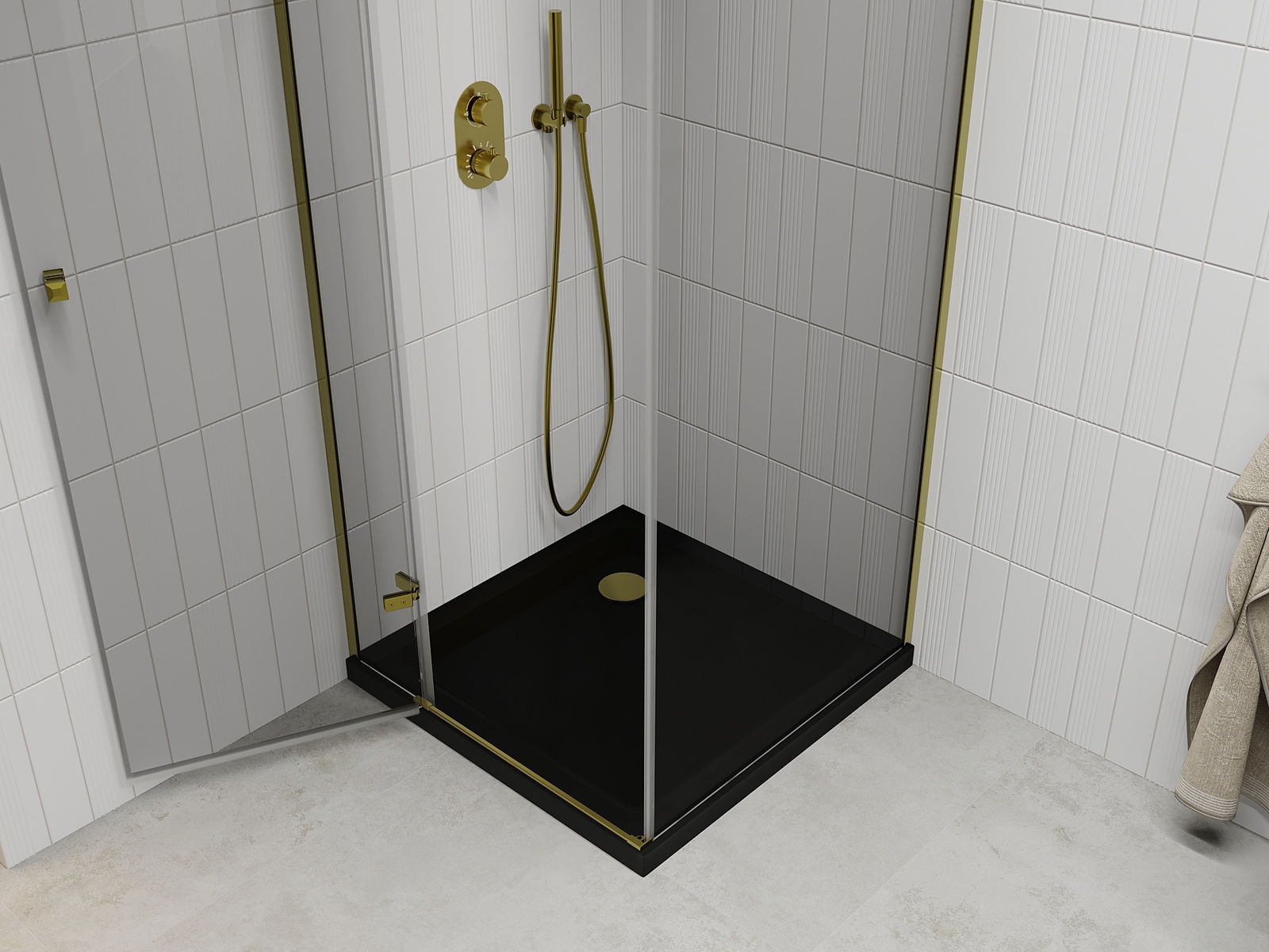 La poignée pratique et confortable est fabriquée en métal durable et résistant. Sa forme à la mode, combinée à une finition assortie à la couleur des profilés, donne à l'ensemble un aspect moderne et stylé, soulignant l'esthétique de chaque salle de bain.