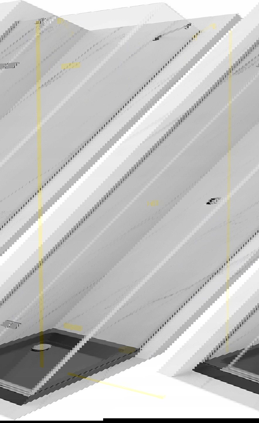 Mexen Roma cabine de douche pivotante 80 x 80 cm, transparente, or + receveur Flat, noir - 854-080-080-50-00-4070G