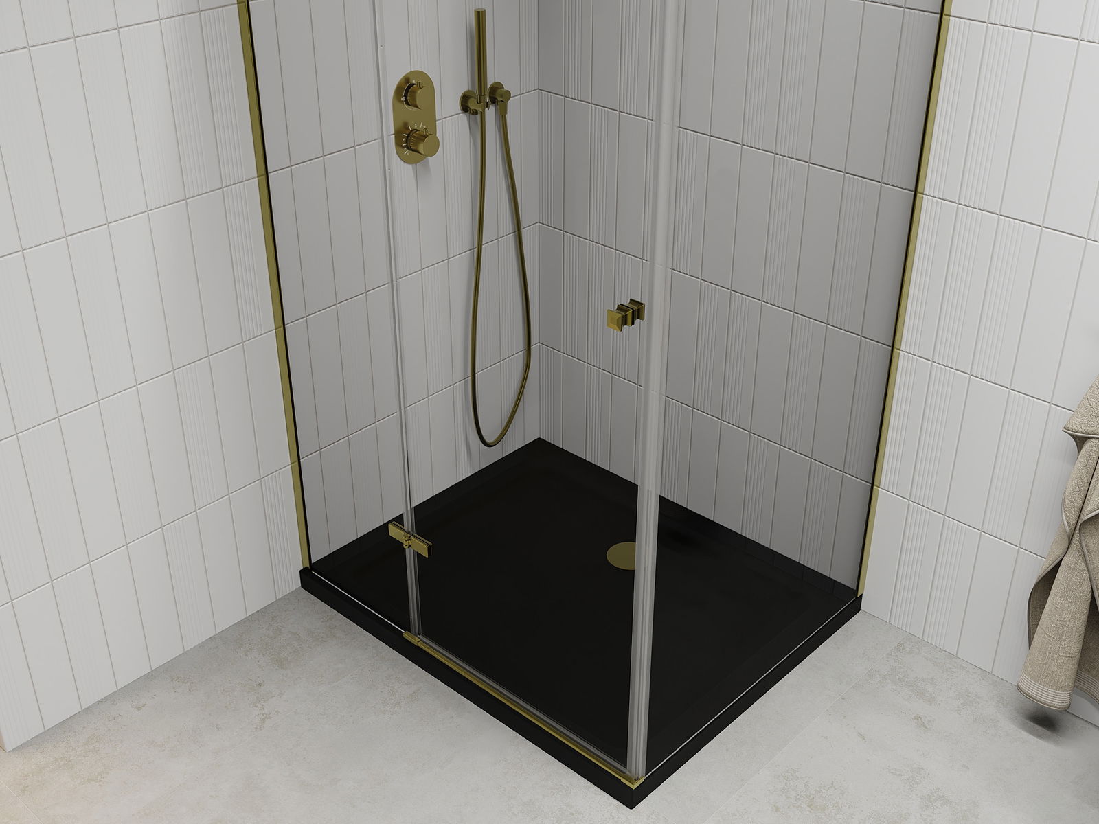 La poignée pratique et confortable est fabriquée en métal durable et résistant. Sa forme à la mode, combinée à une finition assortie à la couleur des profilés, donne à l'ensemble un aspect moderne et stylé, soulignant l'esthétique de chaque salle de bain.