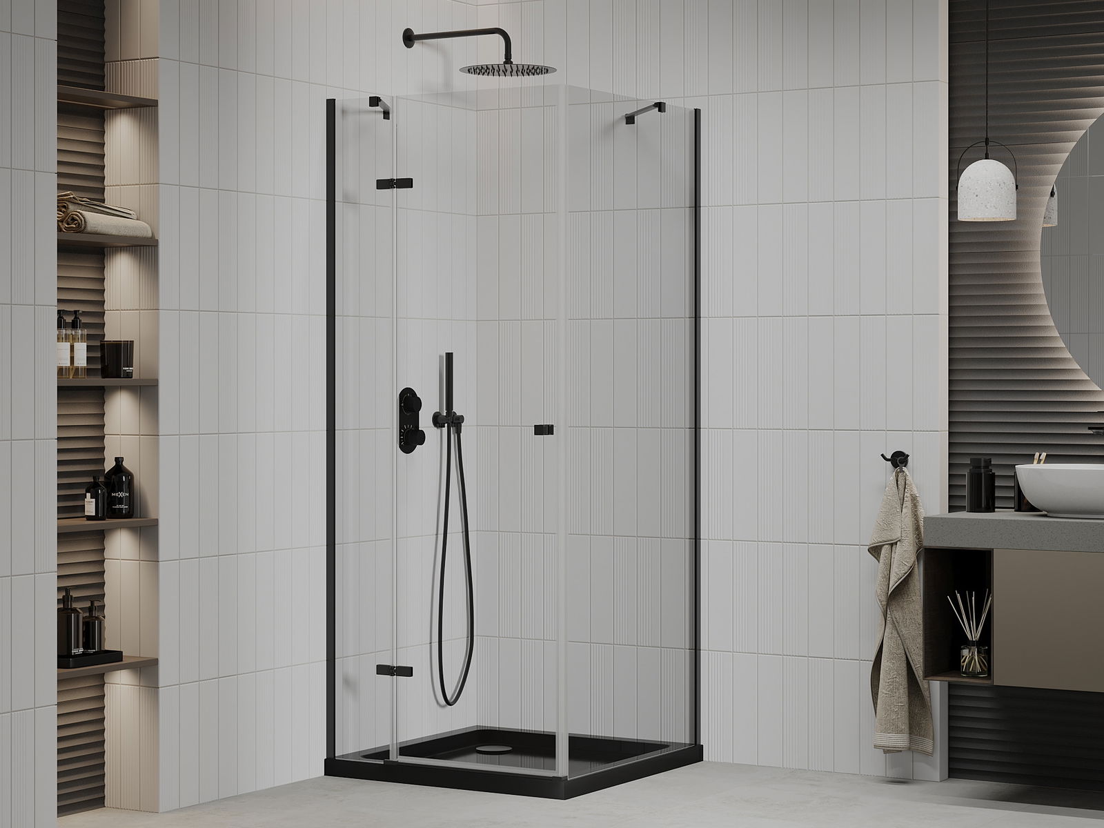 Mexen Roma cabine de douche pivotante 80 x 80 cm, transparent, noir + receveur de douche Plat, noir - 854-080-080-70-00-4070B