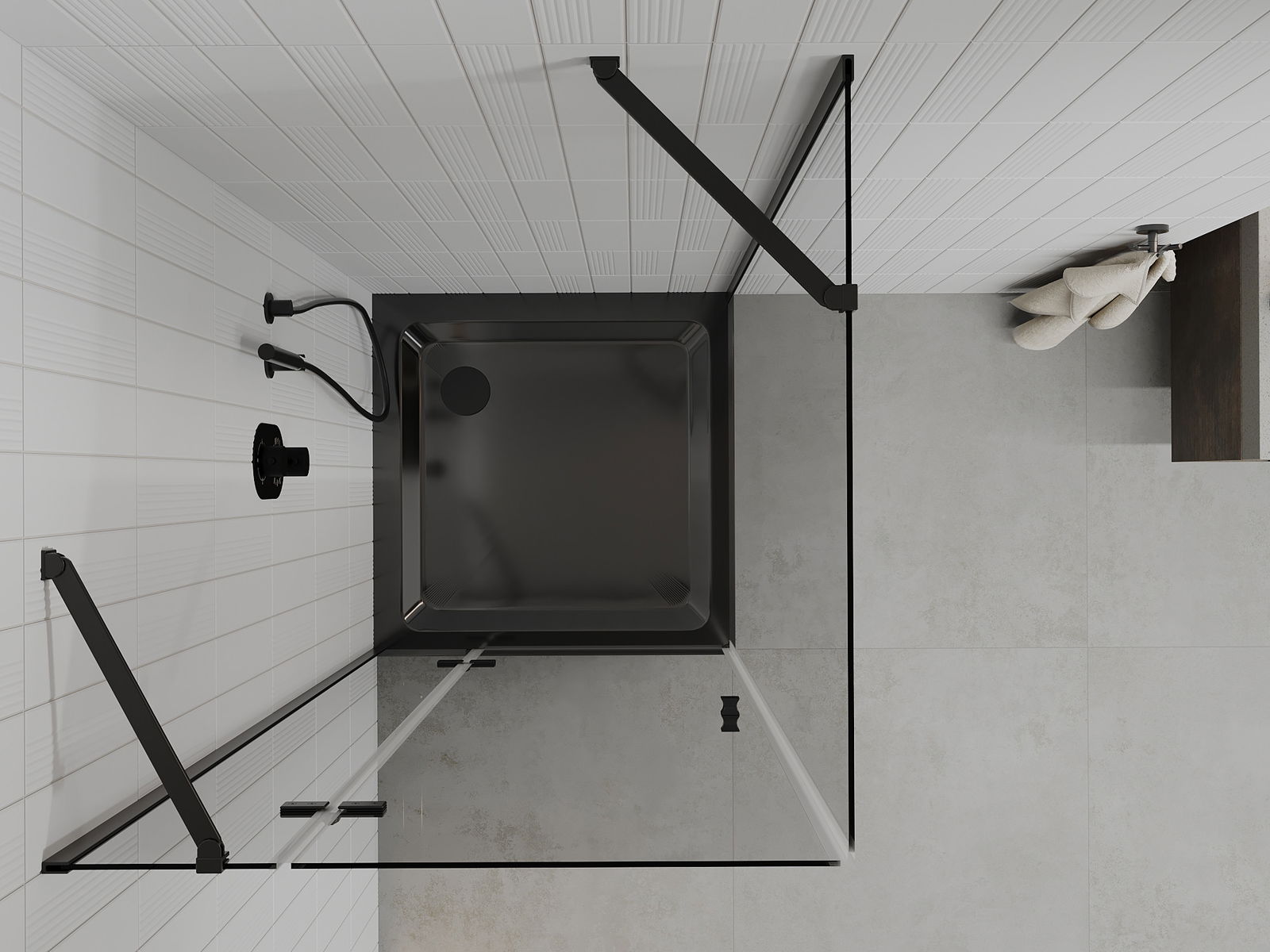 La poignée pratique et confortable est fabriquée en métal durable et résistant. Sa forme à la mode, combinée à une finition assortie à la couleur des profilés, donne à l'ensemble un aspect moderne et stylé, soulignant l'esthétique de chaque salle de bain.