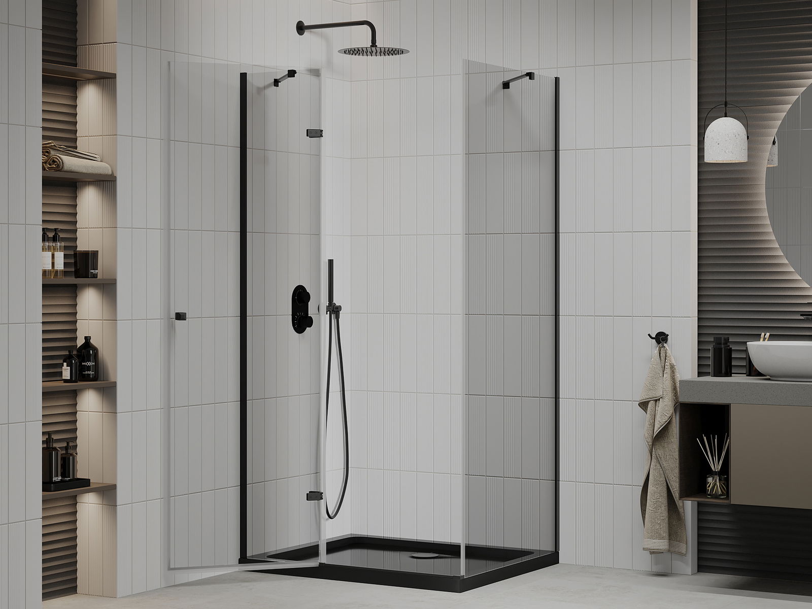 La poignée pratique et confortable est fabriquée en métal durable et résistant. Sa forme à la mode, combinée à une finition assortie à la couleur des profilés, donne à l'ensemble un aspect moderne et stylé, soulignant l'esthétique de chaque salle de bain.