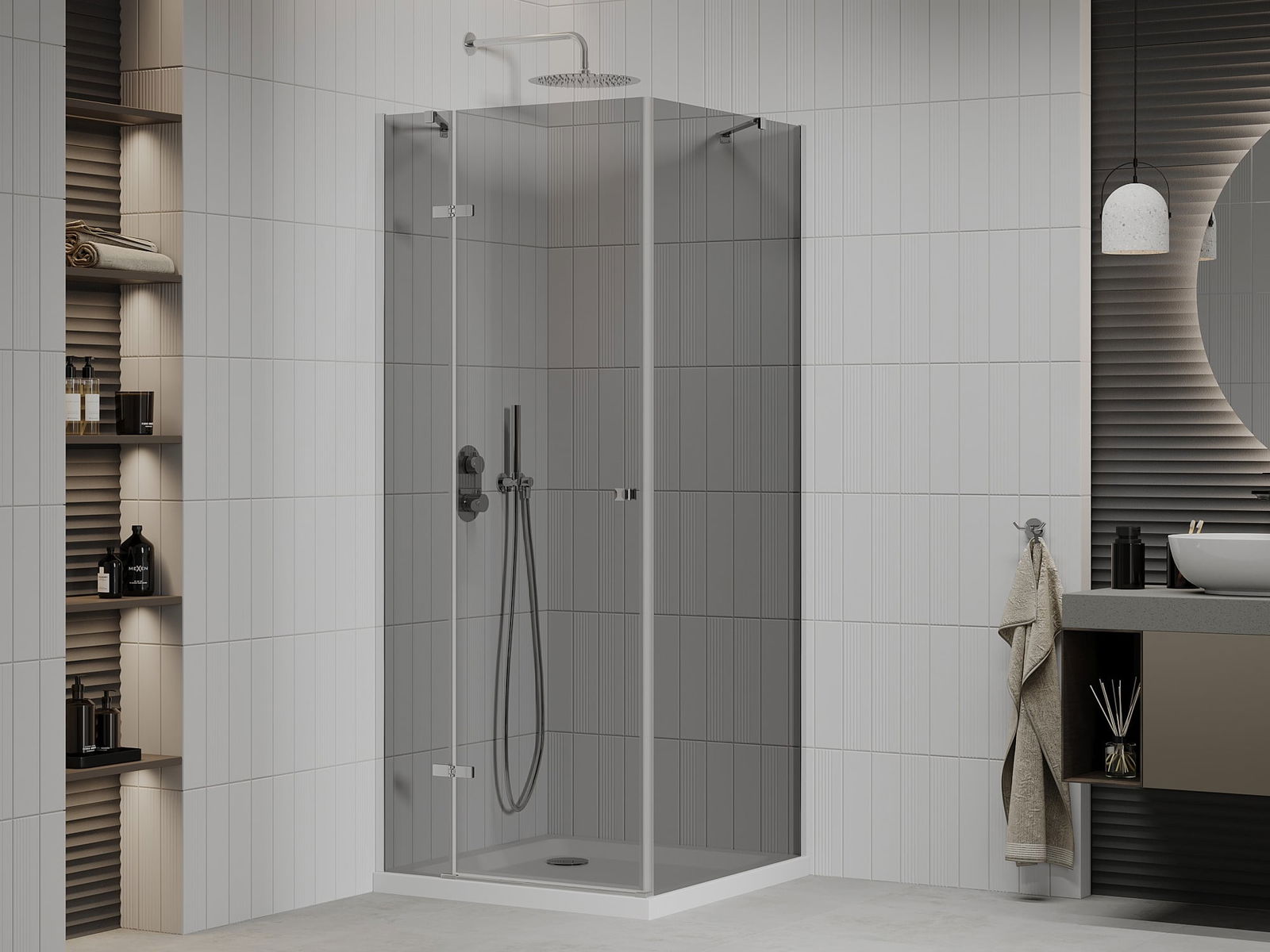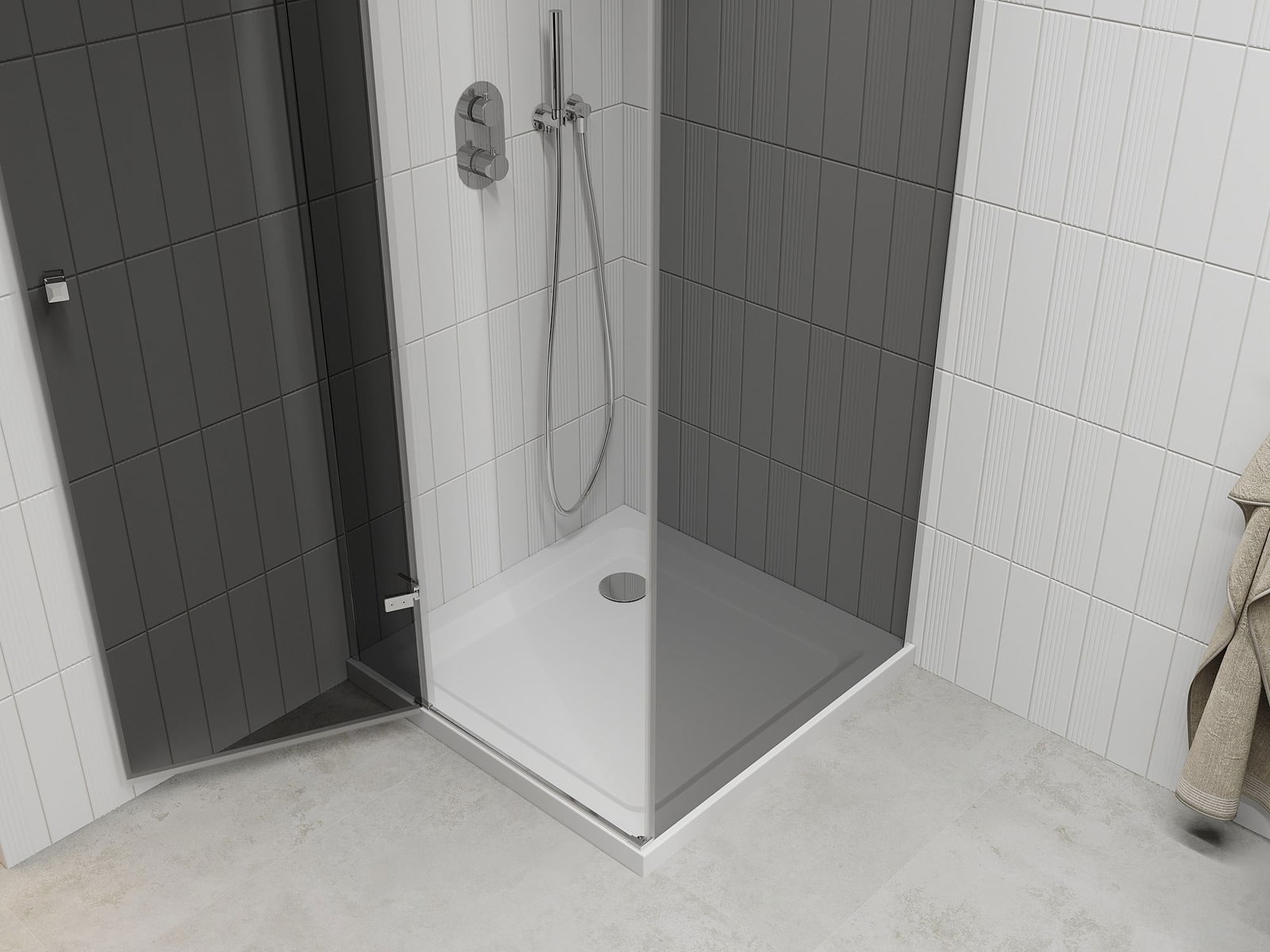 Mexen Roma cabine de douche battante 70 x 70 cm, graphite, chrome + receveur plat, blanc - 854-070-070-01-40-4010
