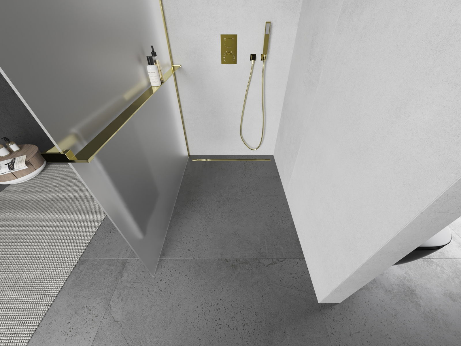 Mexen Kioto+ cloison de douche avec étagère Walk-in 100 x 200 cm, givre, or - 800-100-121-50-30