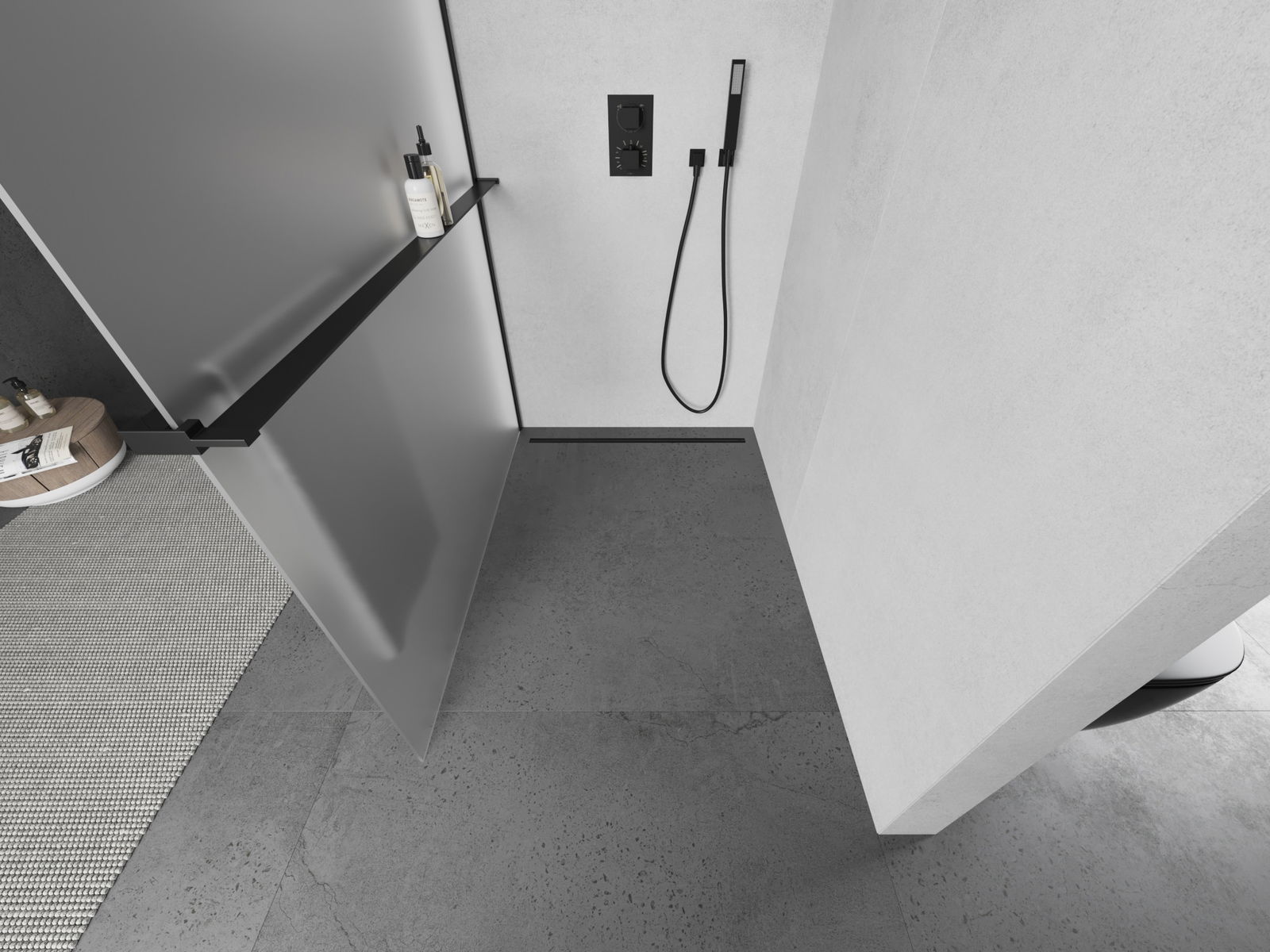 Mexen Kioto+ paroi de douche avec étagère Walk-in 120 x 200 cm, givrée, noire - 800-120-121-70-30