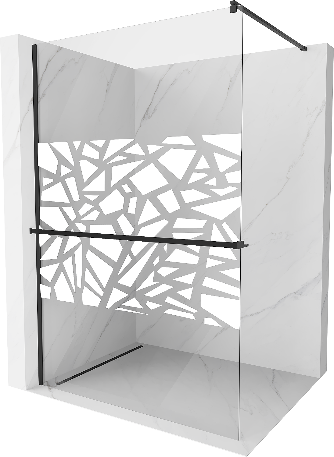 Mexen Kioto+ paroi de douche avec étagère Walk-in 90 x 200 cm, motif blanc, noir - 800-090-121-70-85
