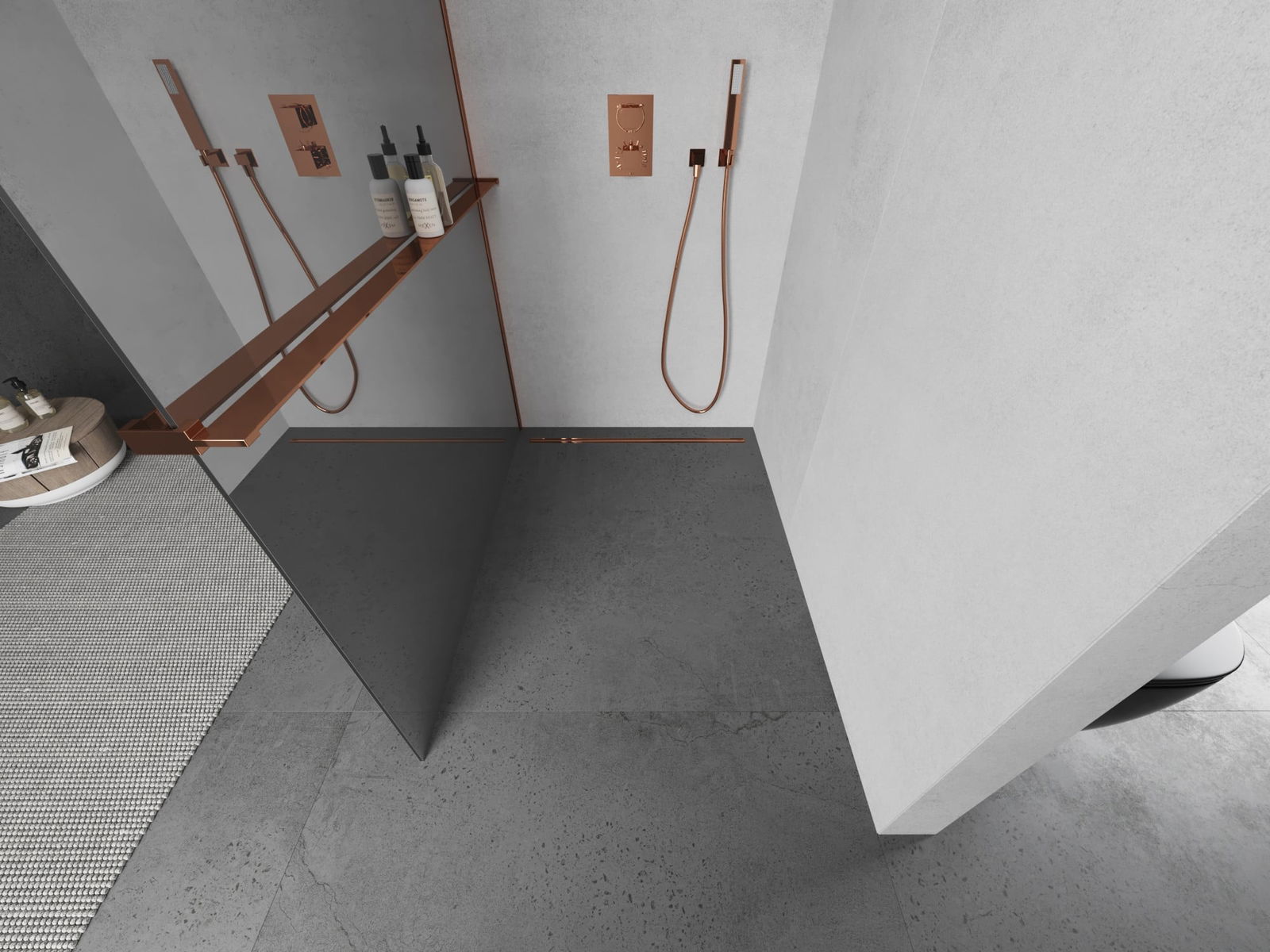 Mexen Kioto+ paroi de douche avec étagère Walk-in 80 x 200 cm, miroir, or rose - 800-080-121-60-50