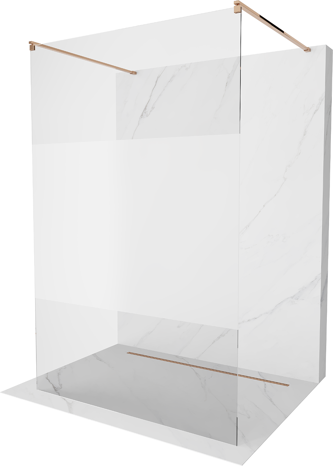 Mexen Kioto paroi de douche autoportante 100 x 200 cm, transparent/givré 8 mm, or rose - 800-100-002-60-35