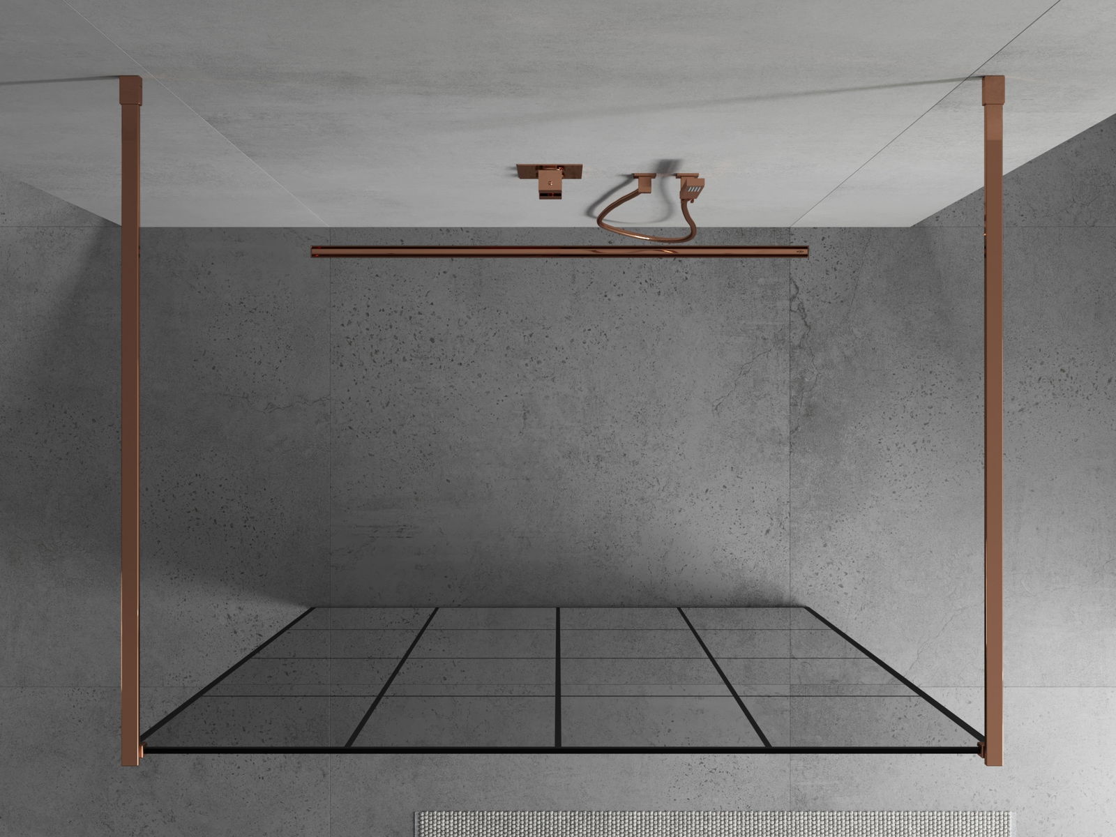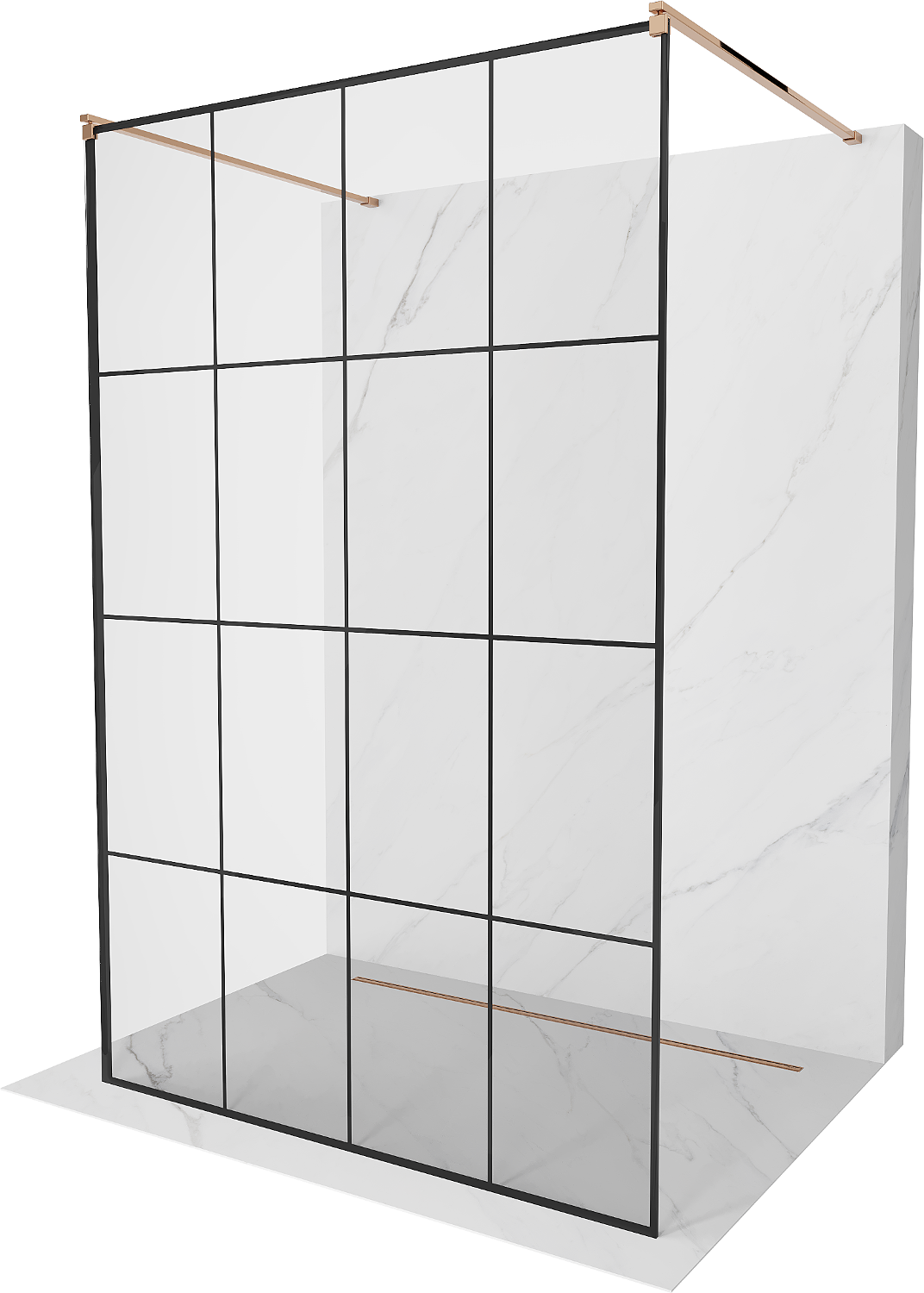 Mexen Kioto paroi de douche autoportante 140 x 200 cm, grille noire 8 mm, or rose - 800-140-002-60-77