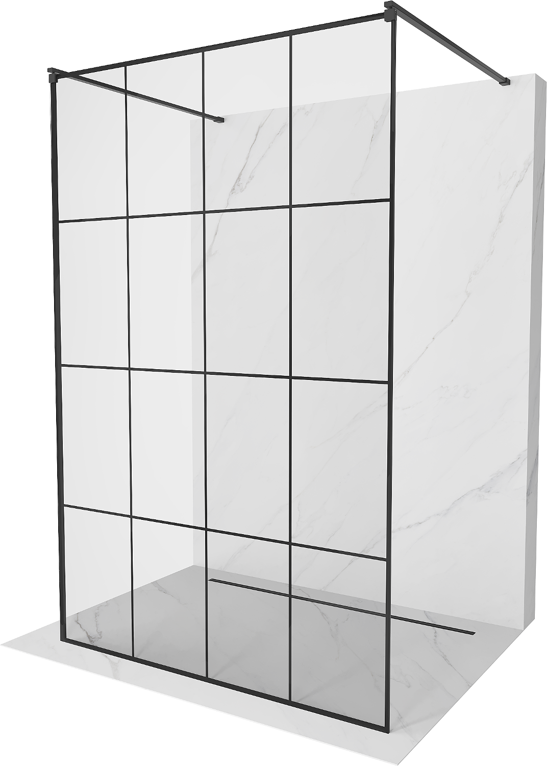 Mexen Kioto paroi de douche autoportante 130 x 200 cm, motif à carreaux noirs 8 mm, noir - 800-130-002-70-77