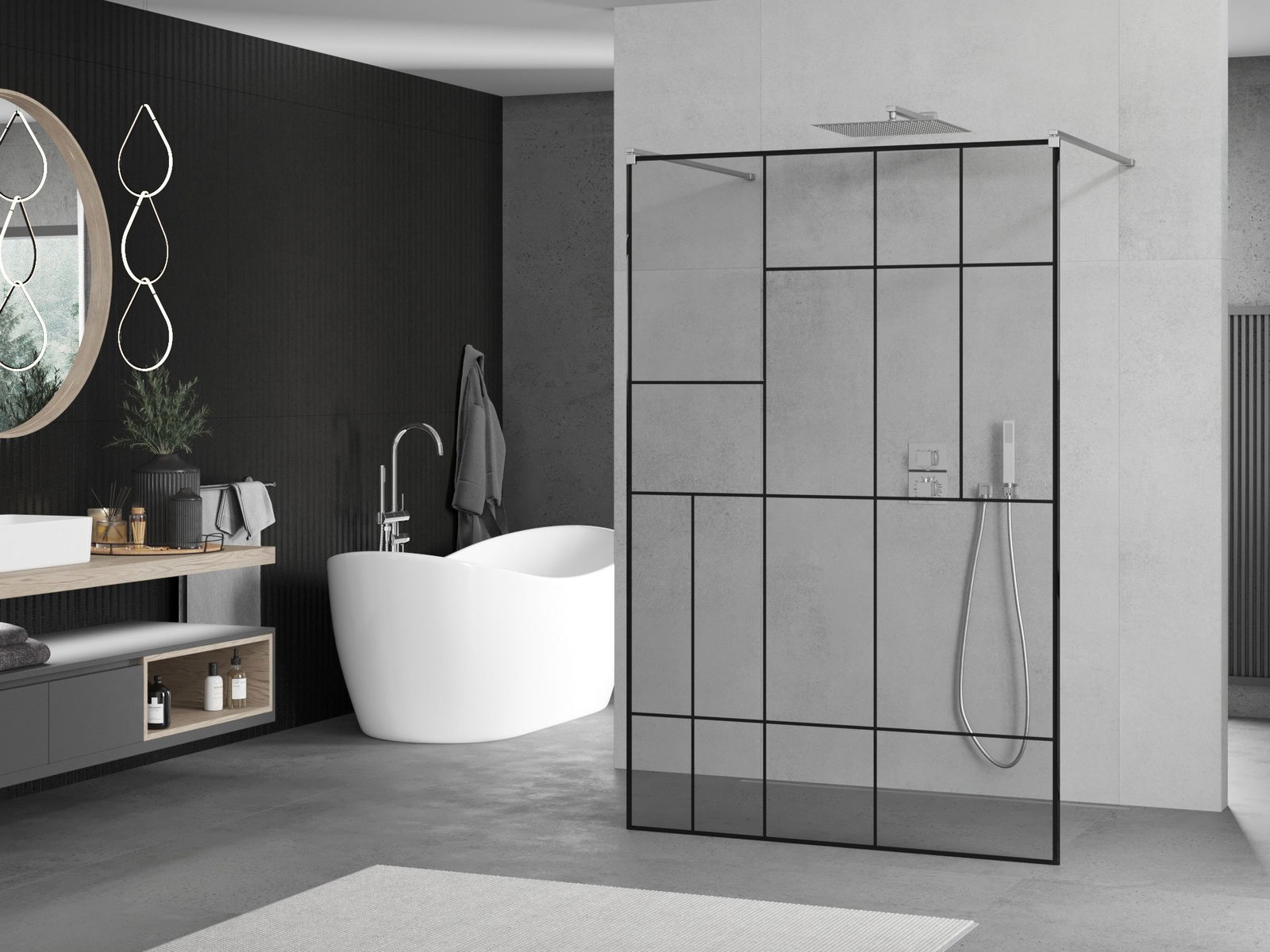 Mexen Kioto paroi de douche autoportante 140 x 200 cm, motif noir 8 mm, chrome - 800-140-002-01-78